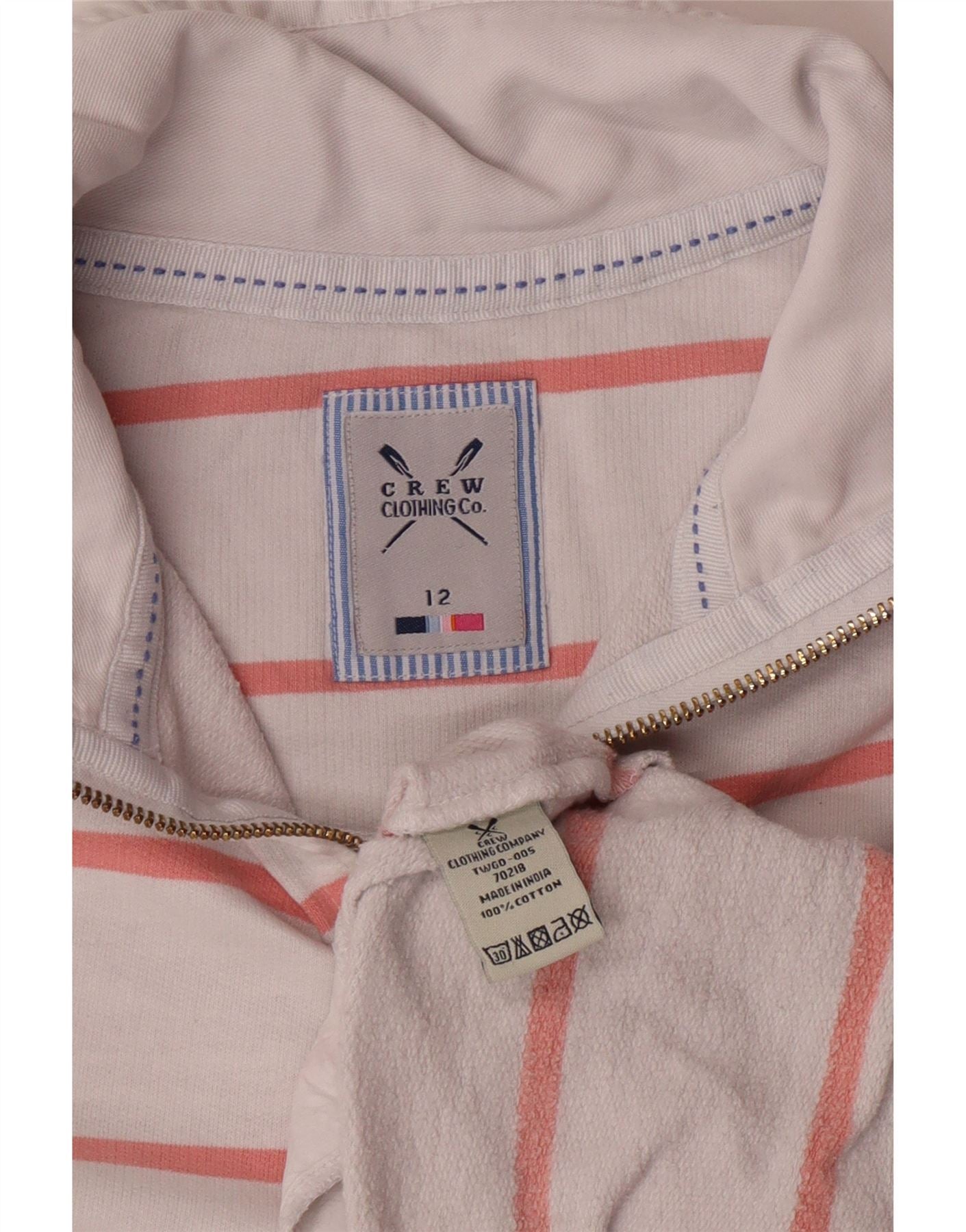 CREW CLOTHING Suéter feminino com gola e zíper UK 12 listrado branco médio