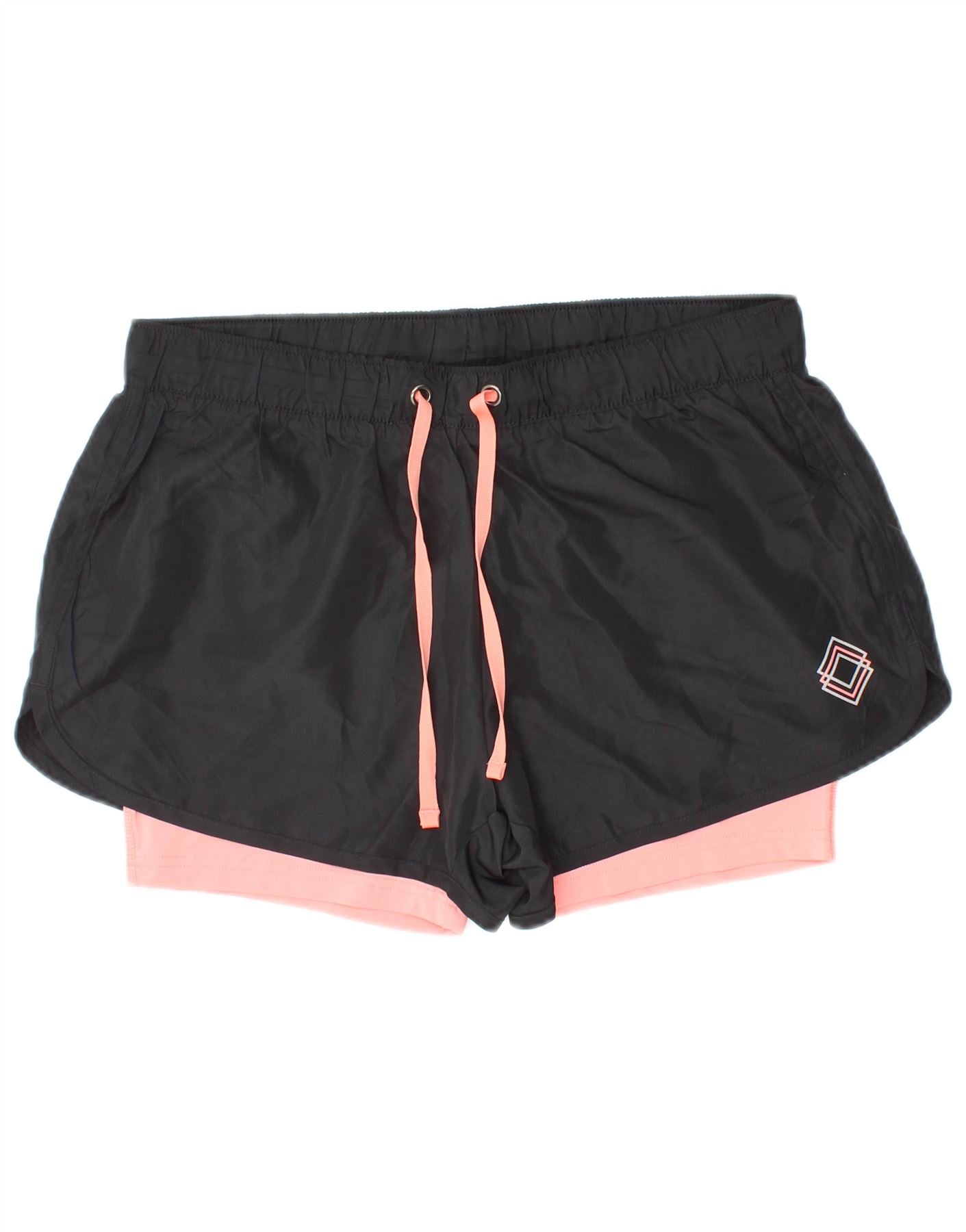 Shorts esportivos femininos CRIVIT UK 14/16 médio preto colorblock poliéster