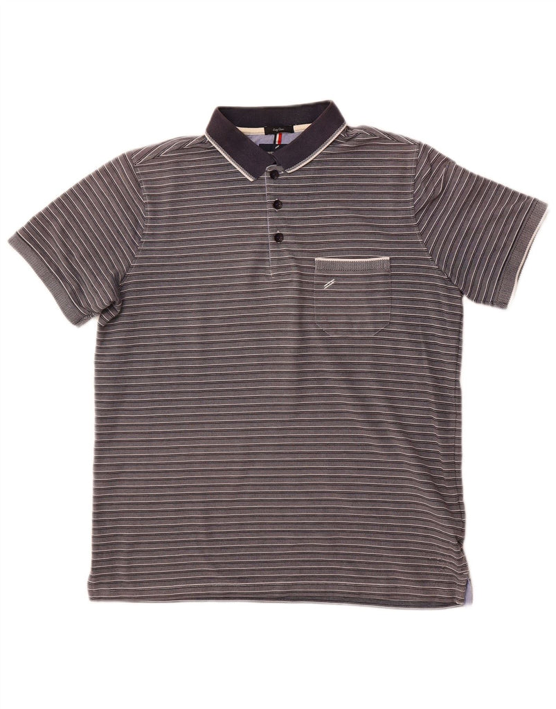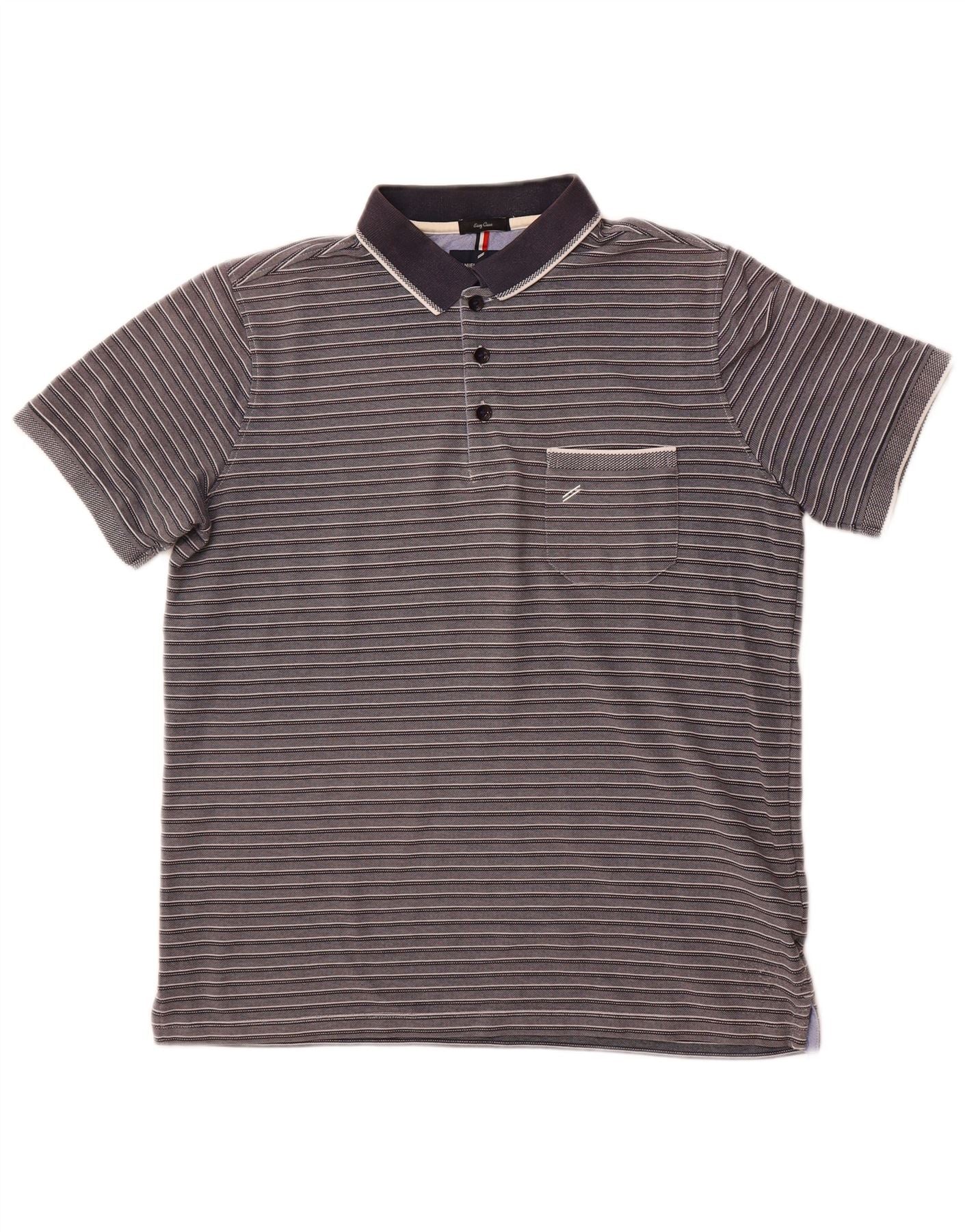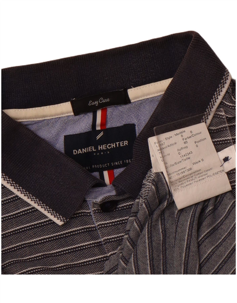 DANIEL HECHTER Camisa polo masculina Easy Care grande algodão listrado cinza