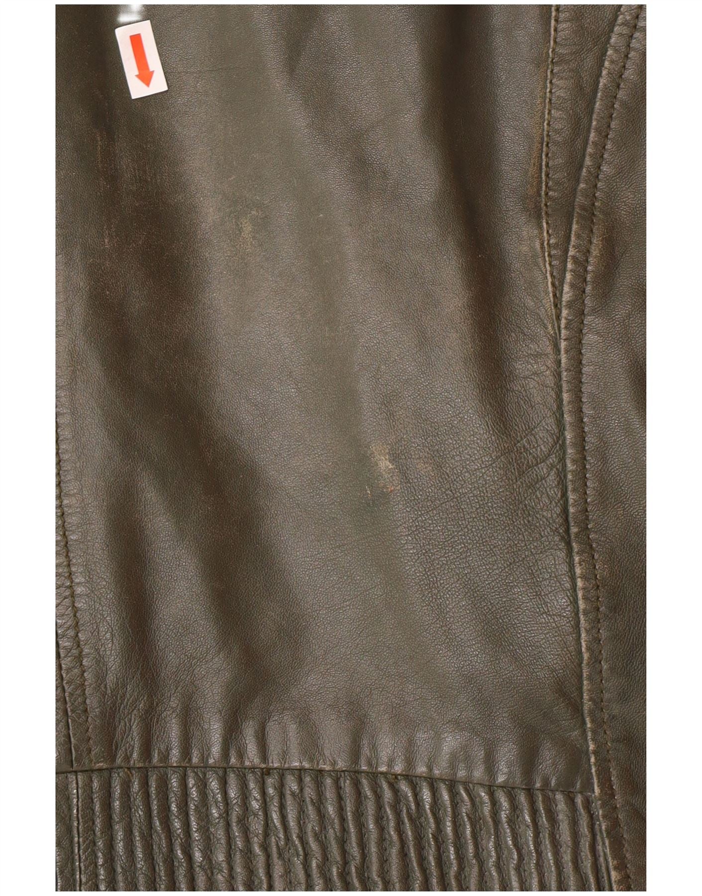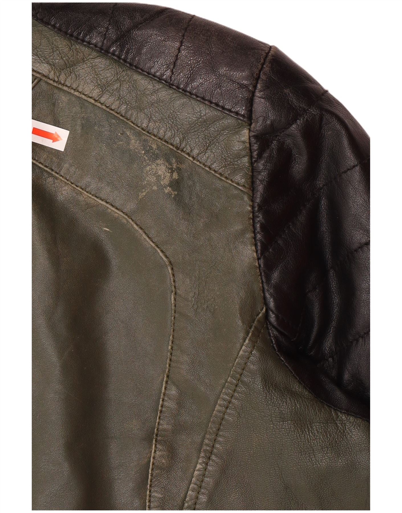 Jaqueta feminina Crop Biker DAVID MOORE Reino Unido 16 grande couro verde colorblock