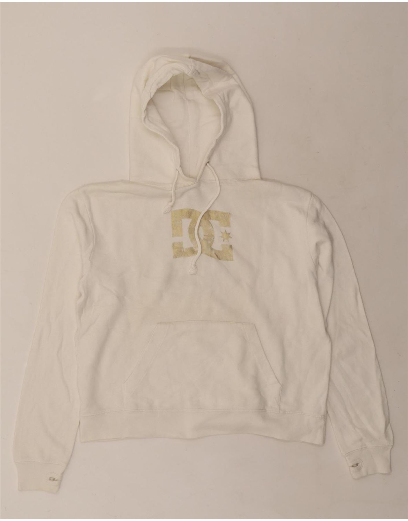 - Descrição da IA: Este suéter com capuz feminino DC é feito de malha de lã macia e esbranquiçada. Possui um design confortável com capuz e mangas compridas. O estilo pulôver oferece um ajuste regular. Um prático bolso canguru fica na frente. Um logotipo gráfico proeminente adorna o peito, adicionando um detalhe exclusivo da marca. Esta peça combina conforto com uma estética casual e desportiva.