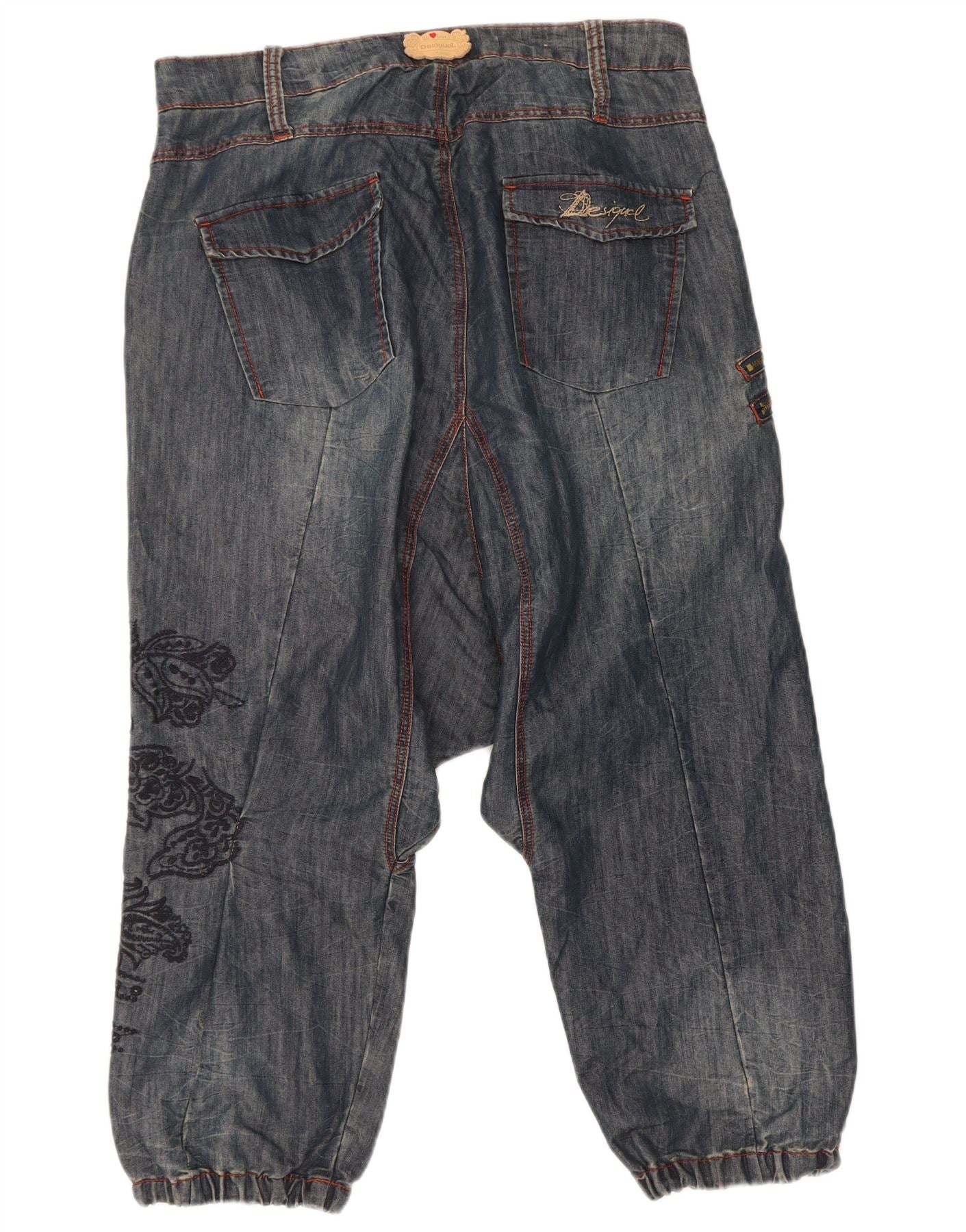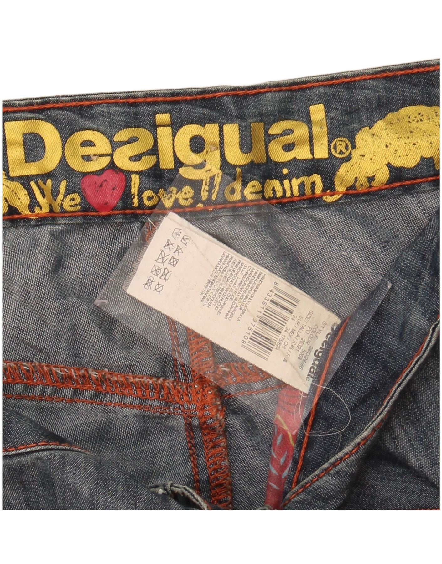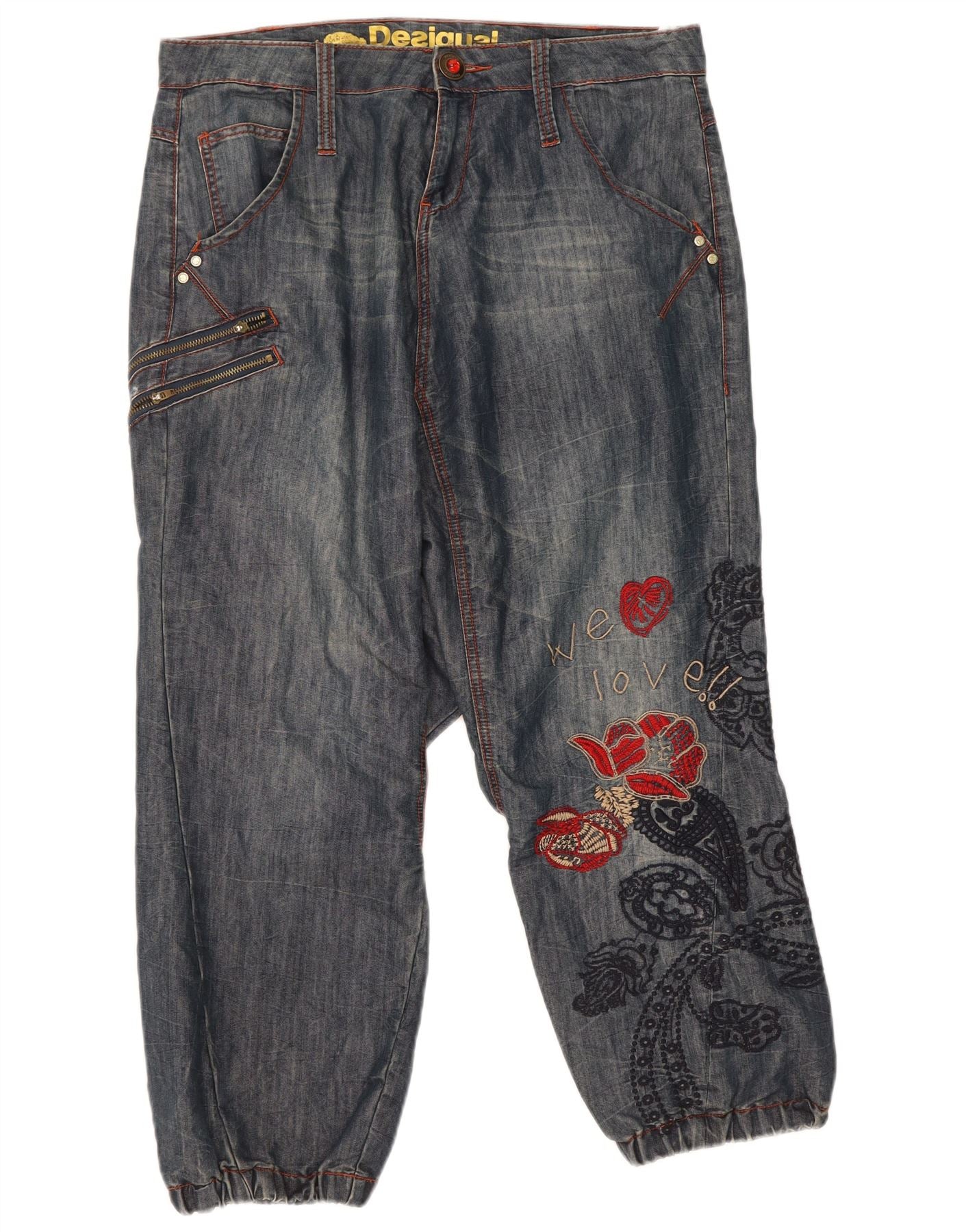 DESIGUAL Calça jeans feminina com virilha larga W34 L15 azul floral poliéster
