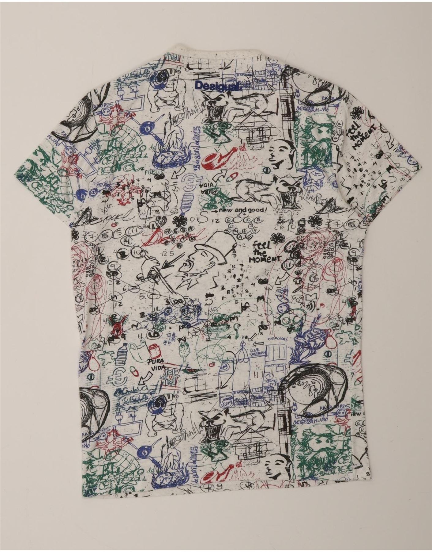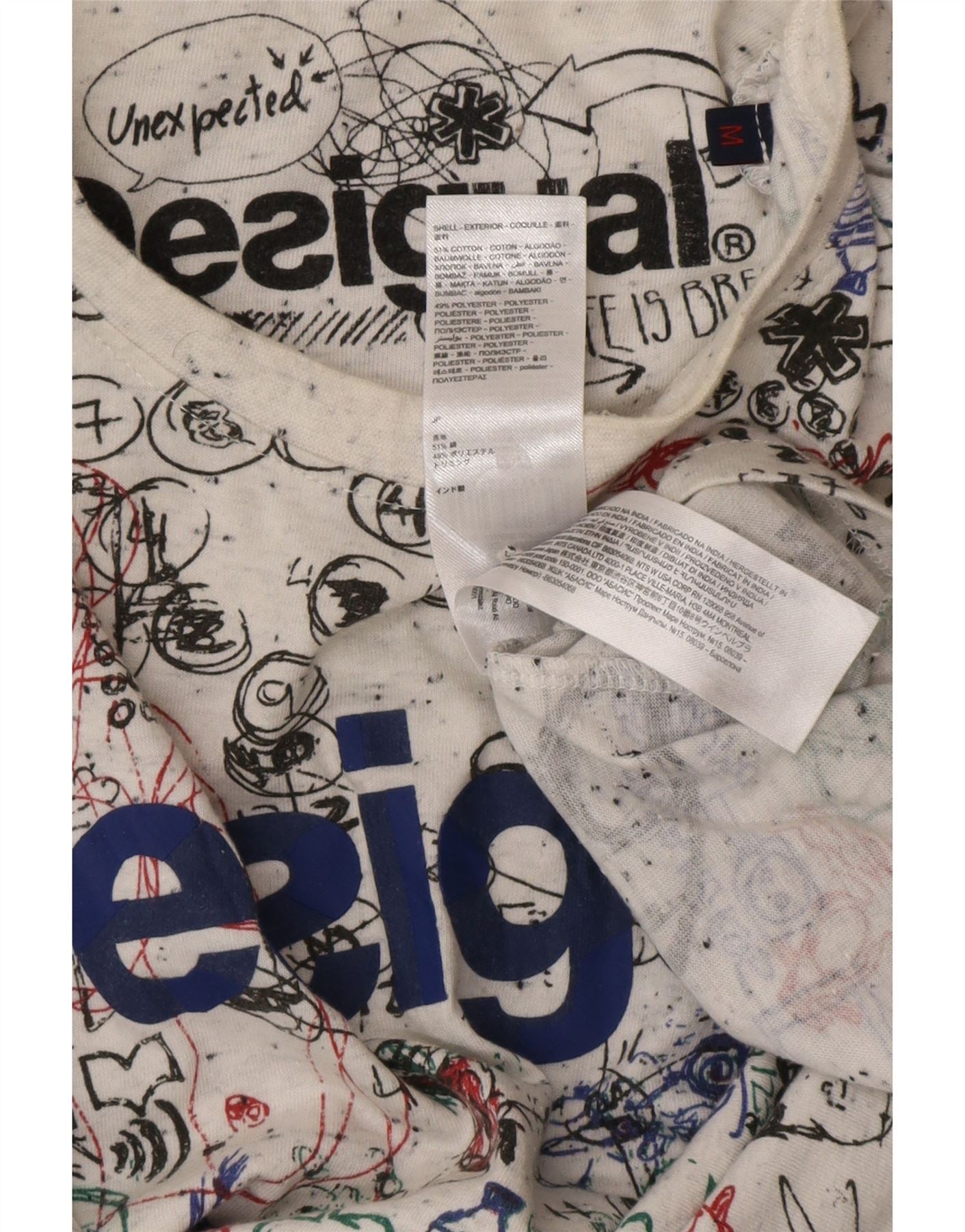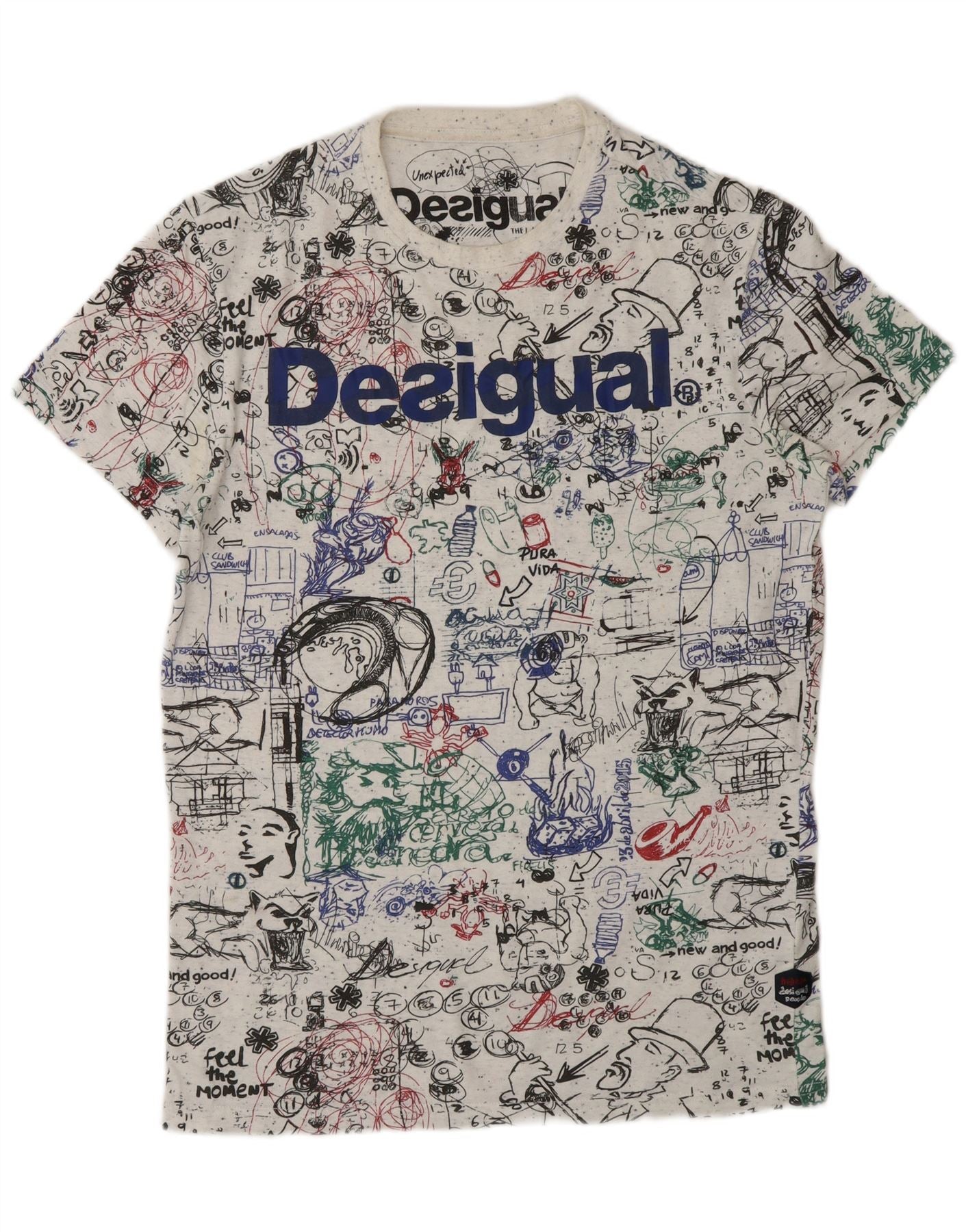 DESIGUAL Camiseta masculina com padrão abstrato gráfico top médio algodão branco