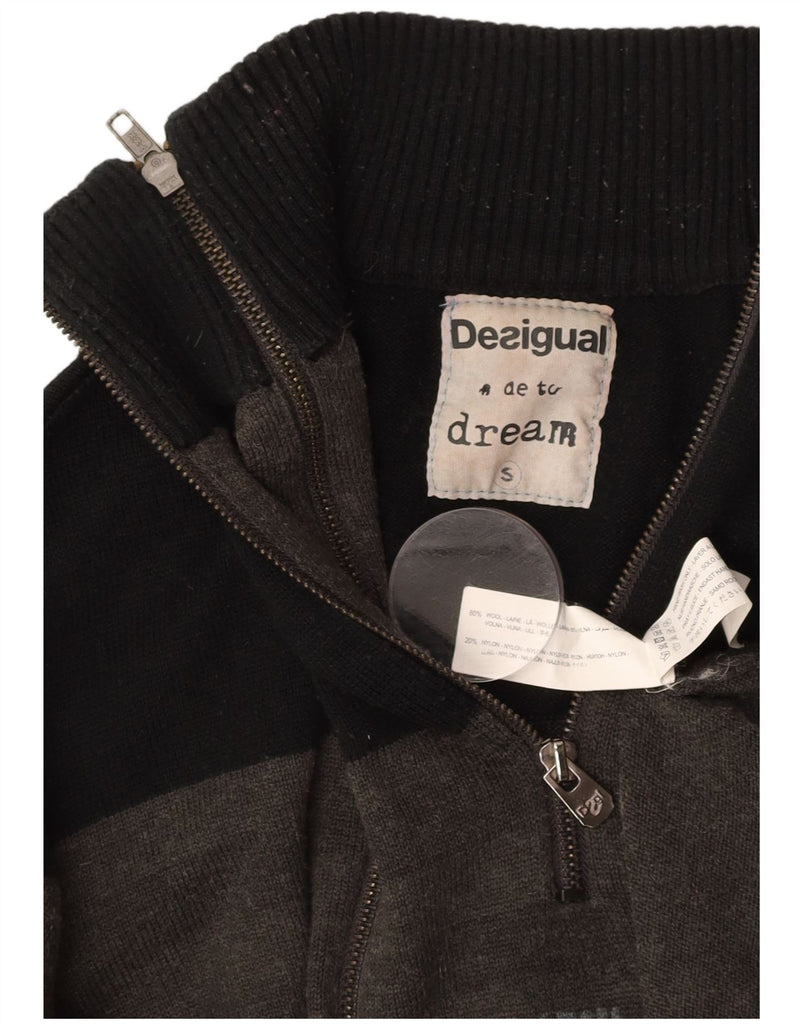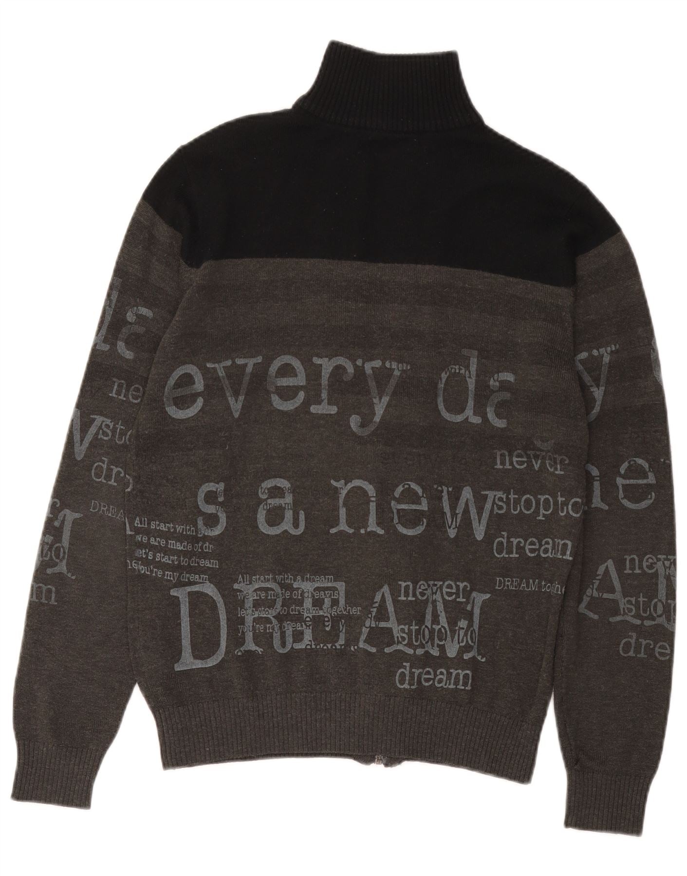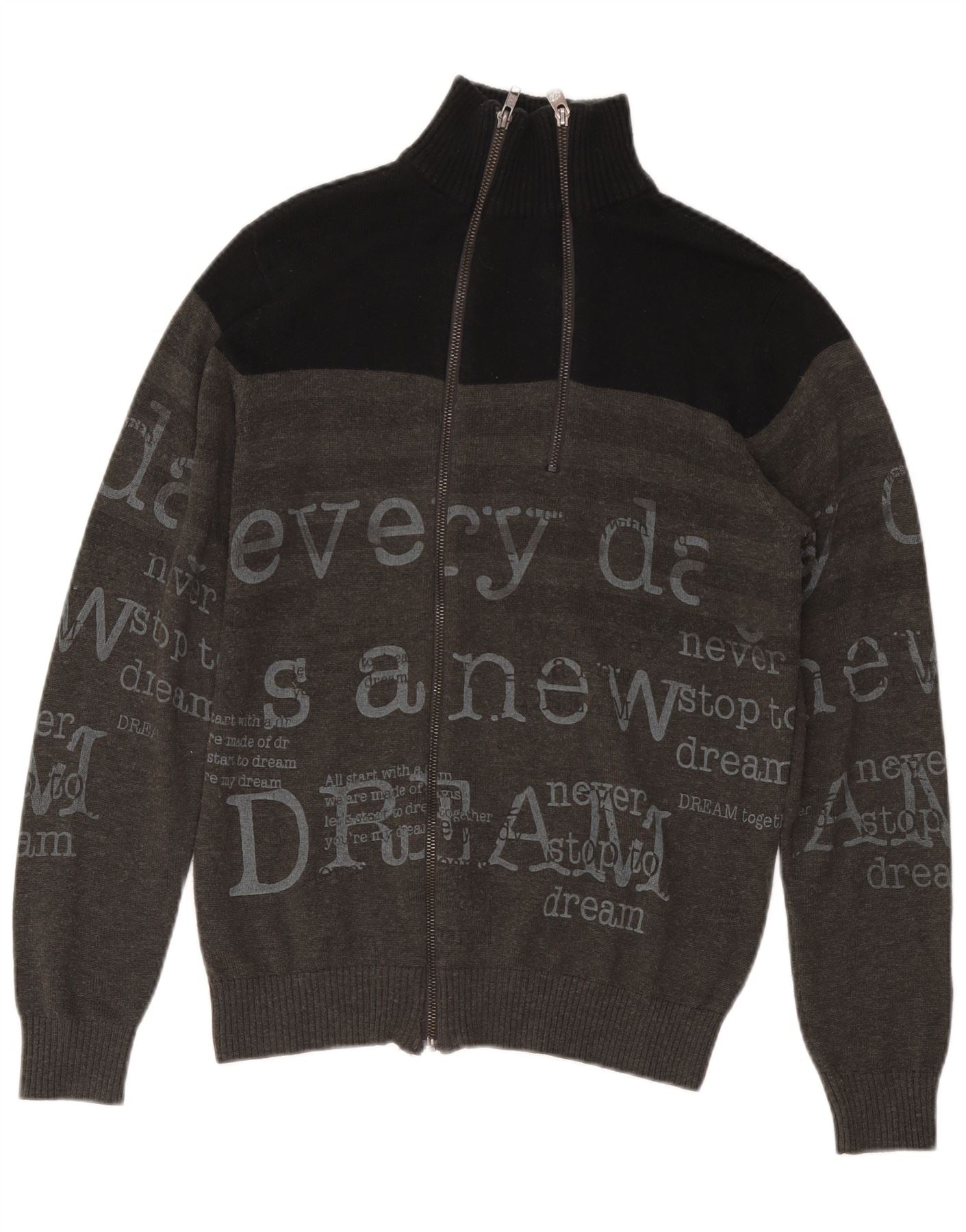DESIGUAL Suéter cardigã masculino gráfico pequeno cinza colorblock lã