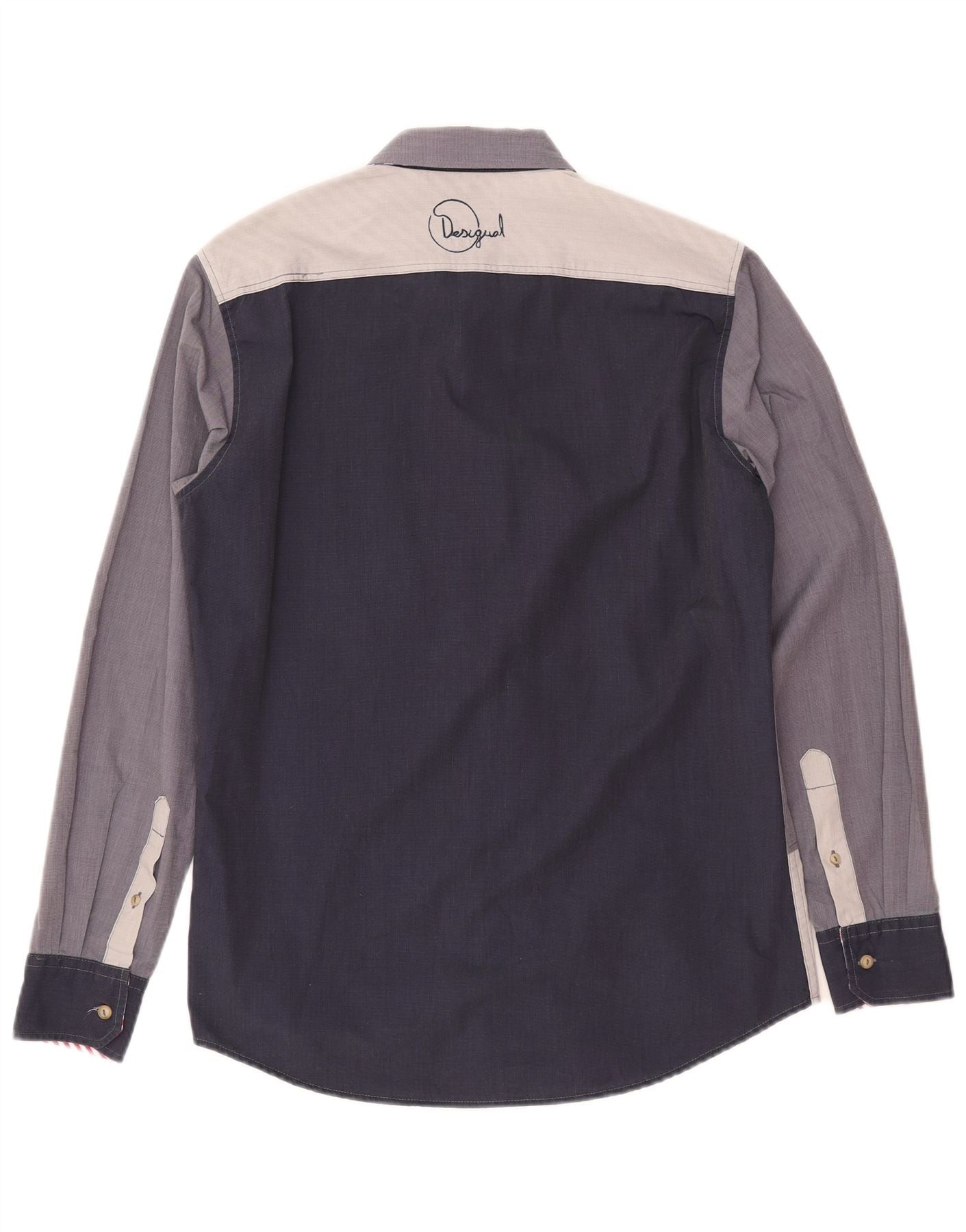 DESIGUAL Camisa gráfica masculina média azul marinho algodão colorblock