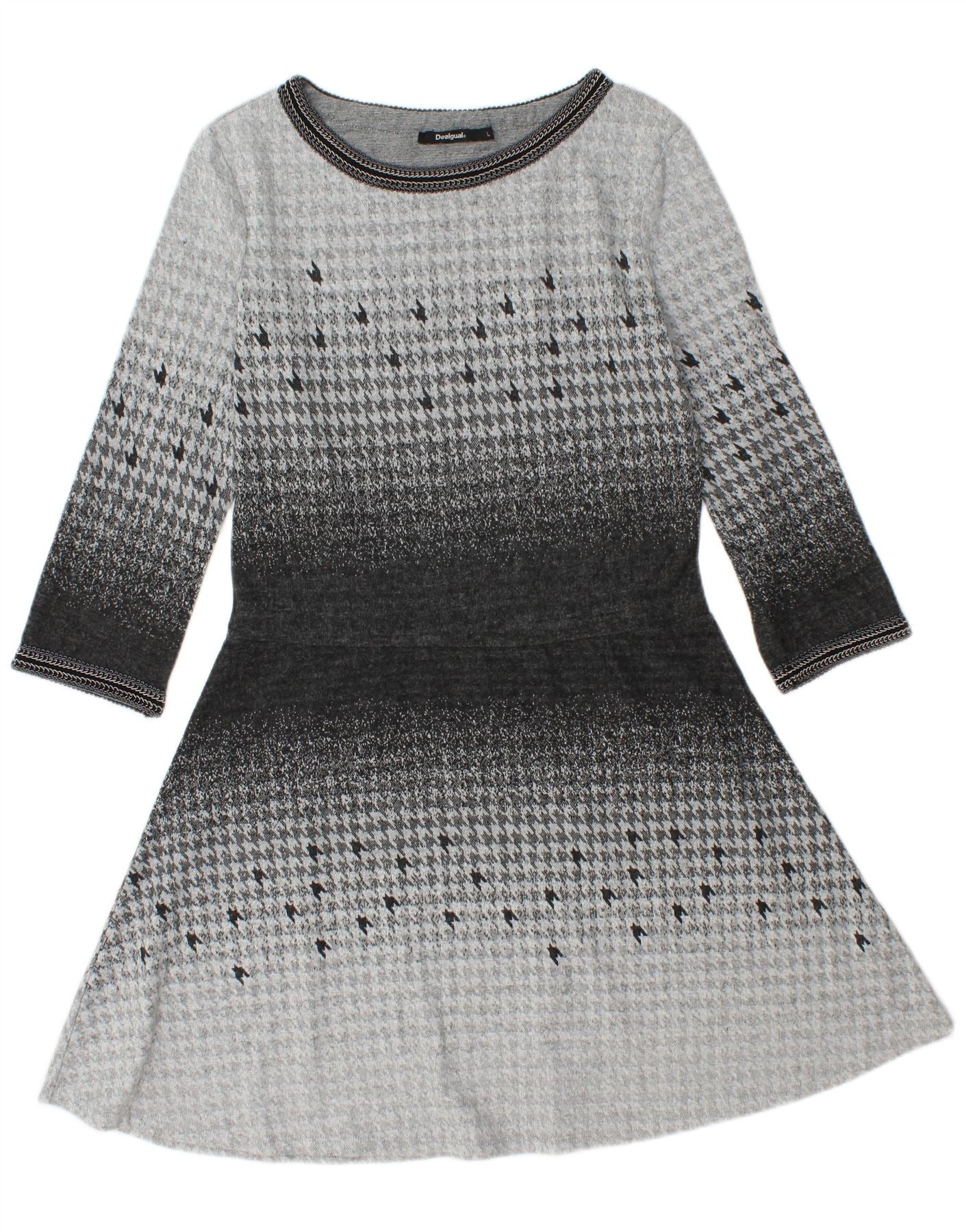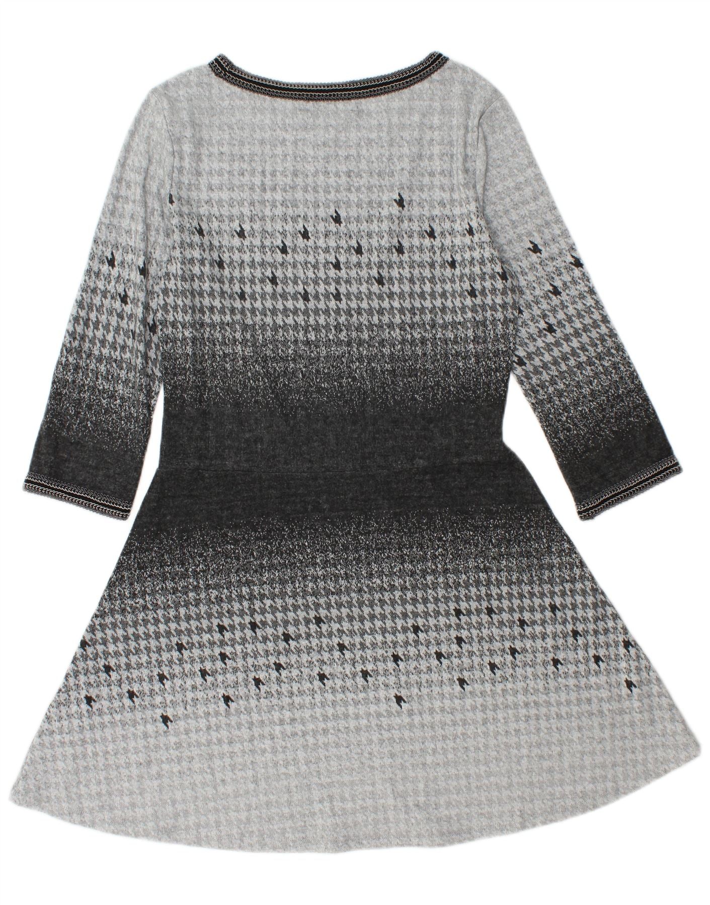 DESIGUAL Vestido feminino manga 3/4 linha A Reino Unido 14 grande cinza houndstooth