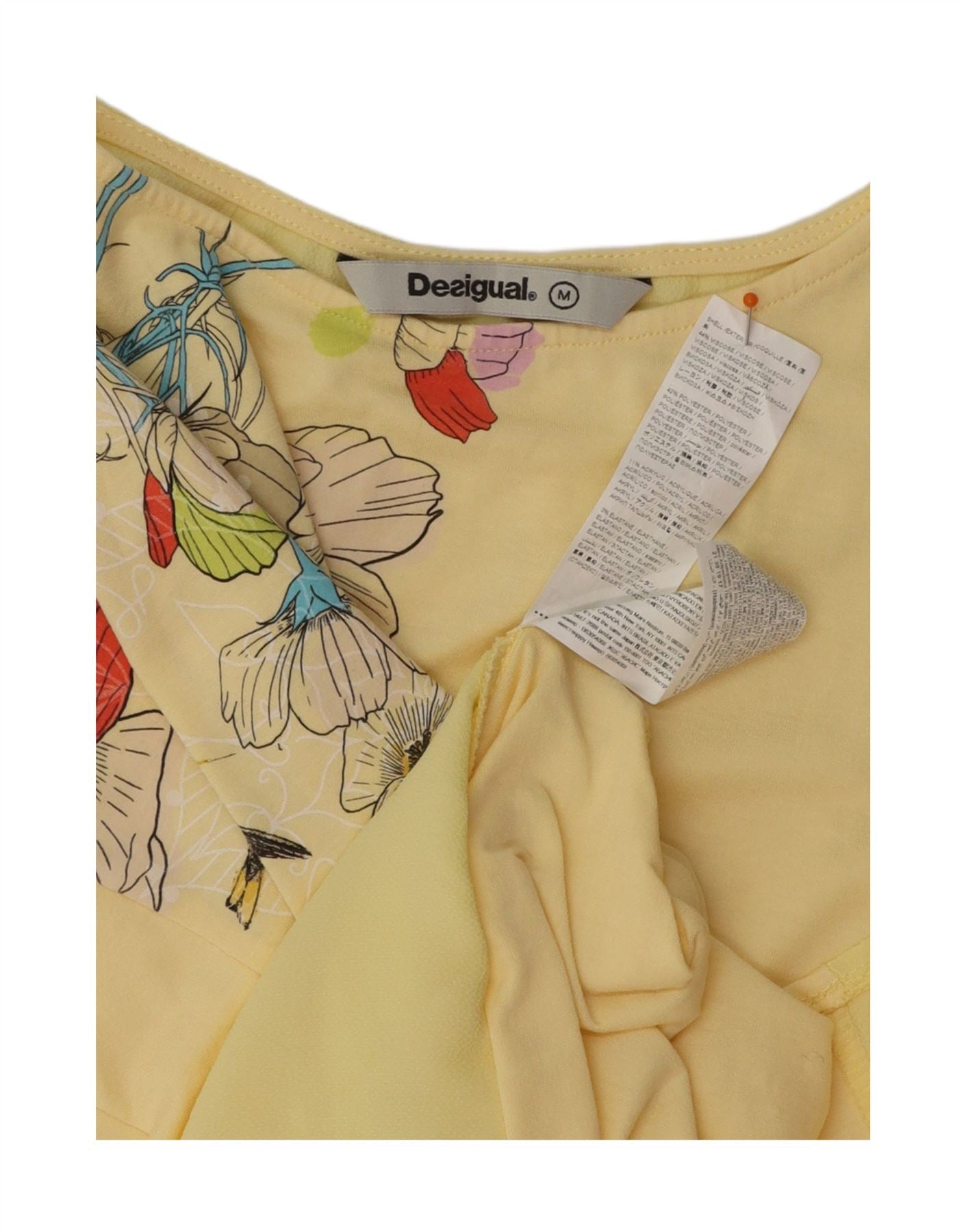 DESIGUAL Womens Asymmetric Blouse Top UK 14 Medium Yellow Floral Viscose