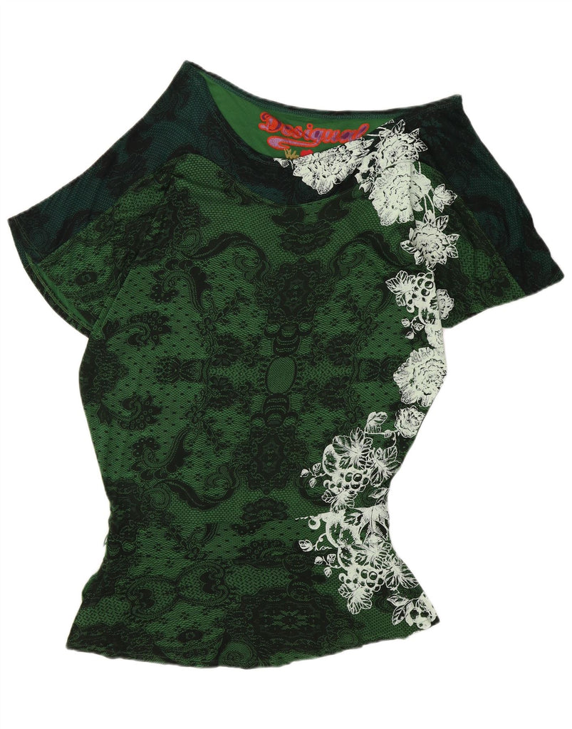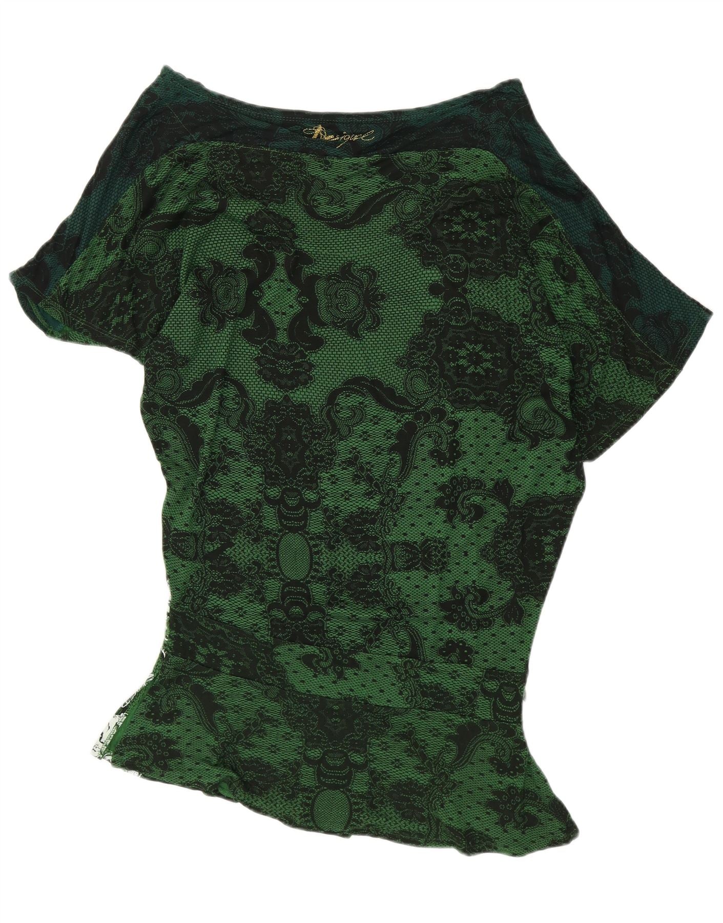 DESIGUAL Womens Batwing Graphic Blouse Top UK 10 Small Green Paisley