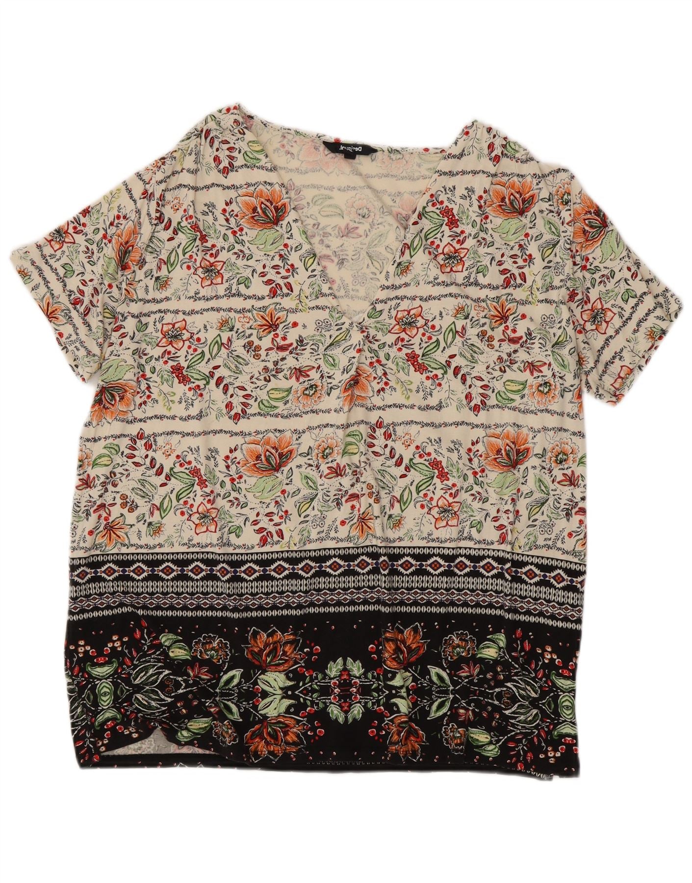 Blusa feminina DESIGUAL UK 20 2XL viscose floral branca