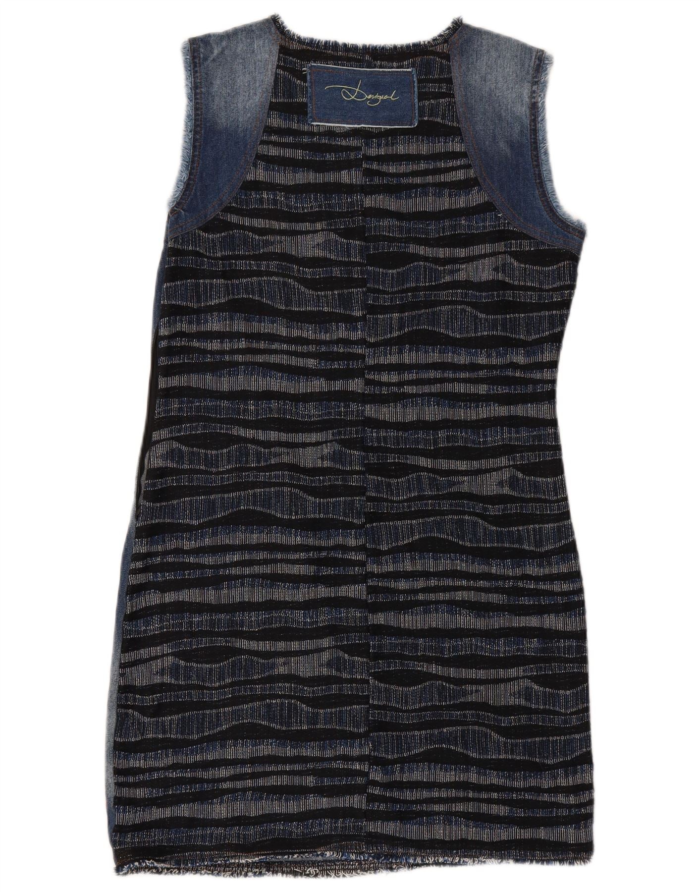 DESIGUAL Vestido feminino gráfico jeans básico UE 42 grande listrado azul marinho