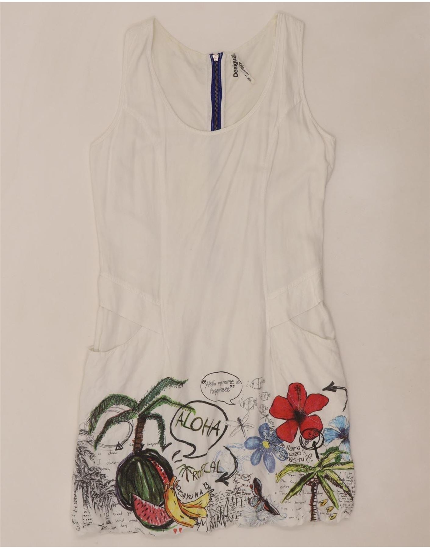DESIGUAL Vestido feminino estampado sem mangas bolha UE 40 médio branco floral