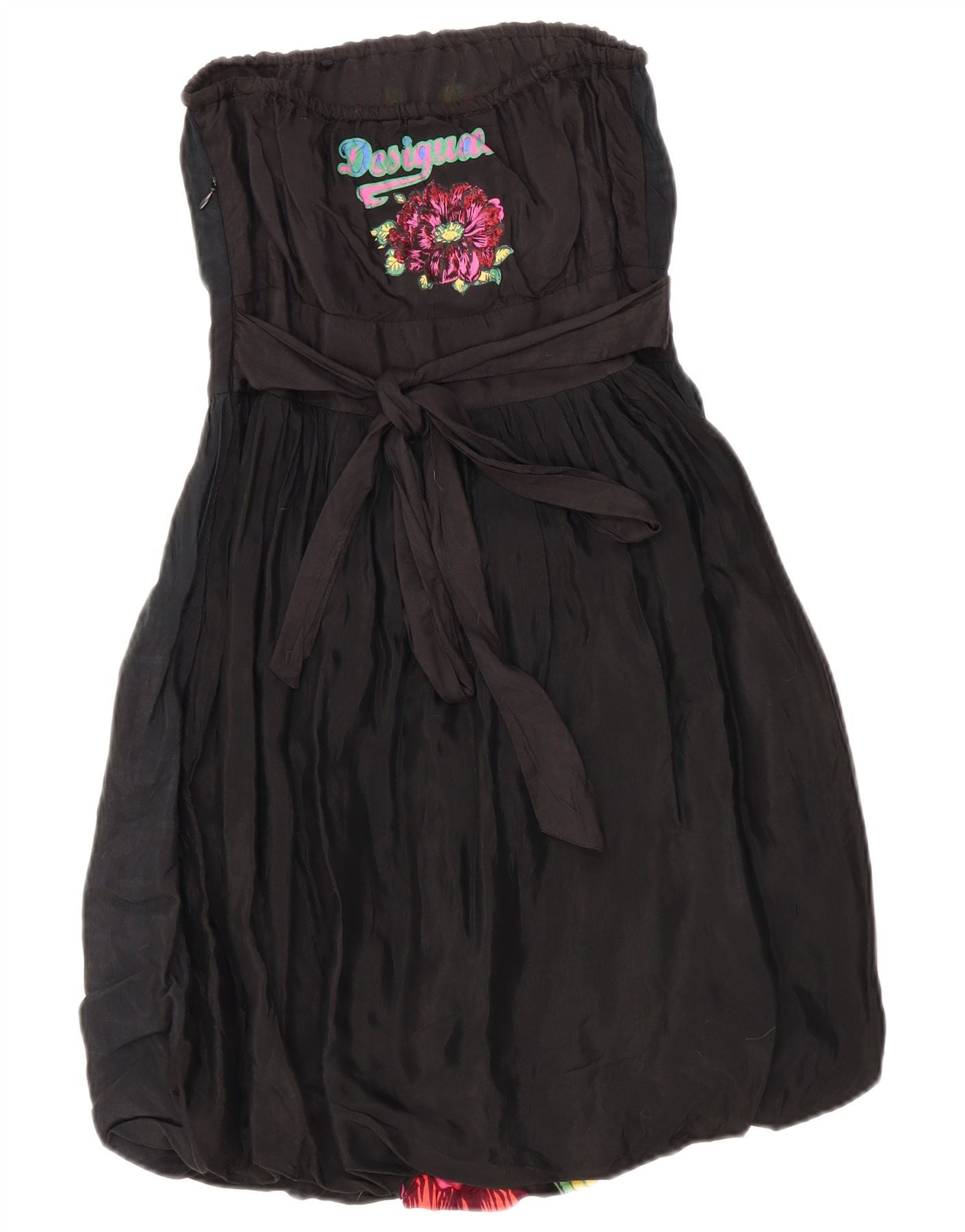 DESIGUAL Vestido feminino estampado sem alças bolha UE 38 médio preto floral