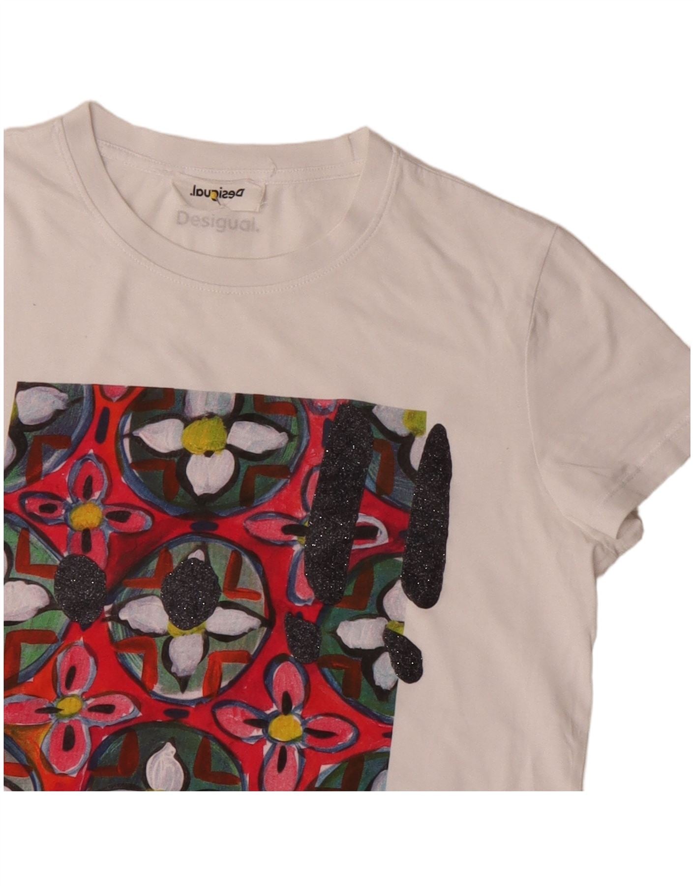 Desigual Camiseta feminina gráfica Top UK 12 Médio Branco