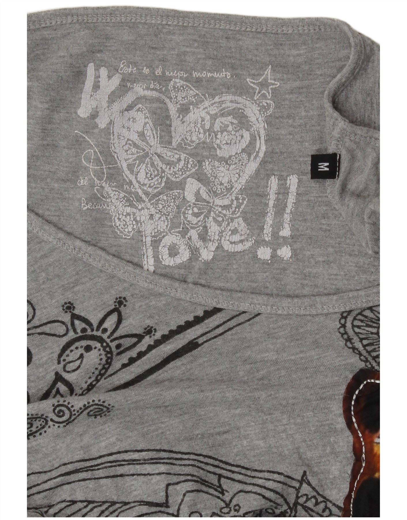 DESIGUAL Camiseta feminina gráfica Top UK 14 Borboleta cinza médio