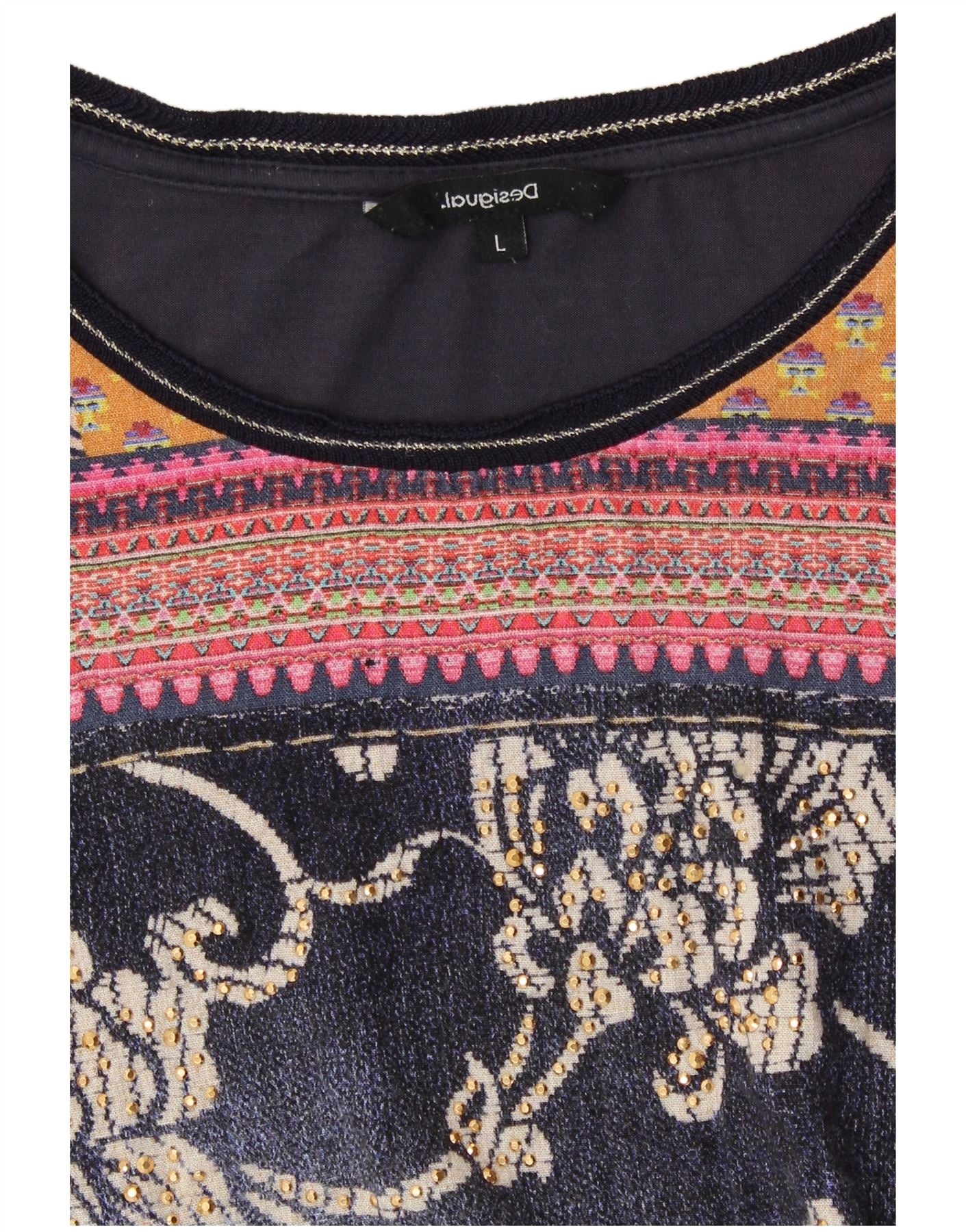 DESIGUAL Top gráfico feminino manga 3/4 Reino Unido 14 grande cinza floral