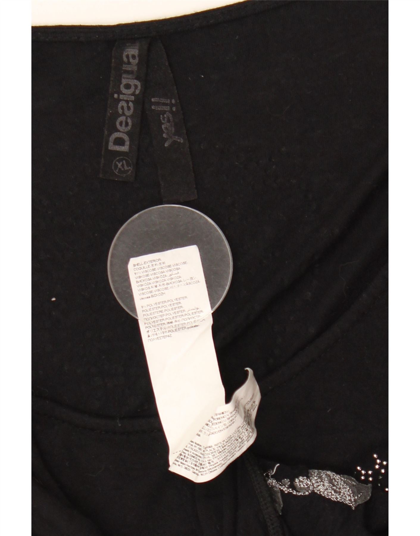 DESIGUAL Top gráfico feminino manga 3/4 UK 18 XL preto estampa animal viscose
