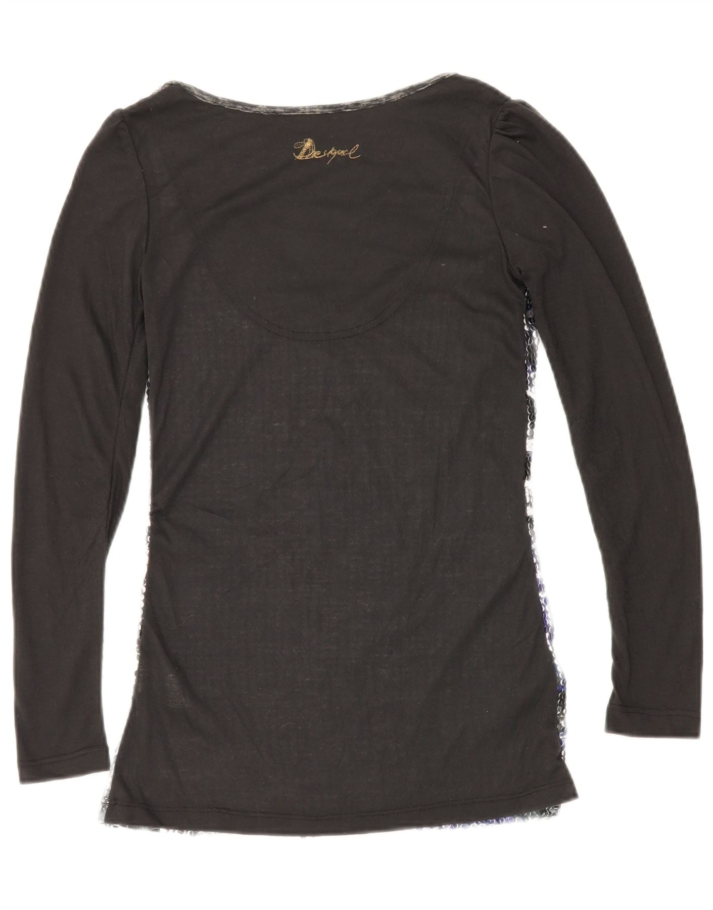 DESIGUAL Top gráfico feminino manga comprida Reino Unido 10 pequeno poliéster preto