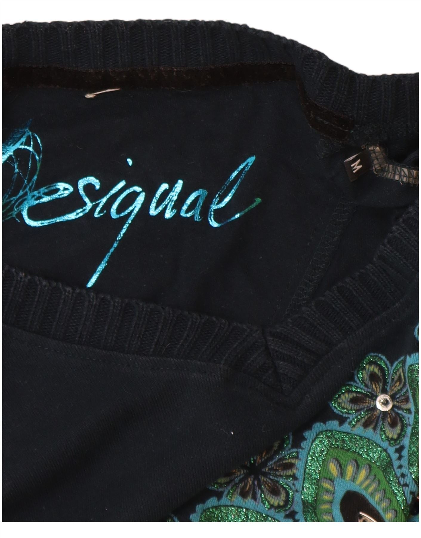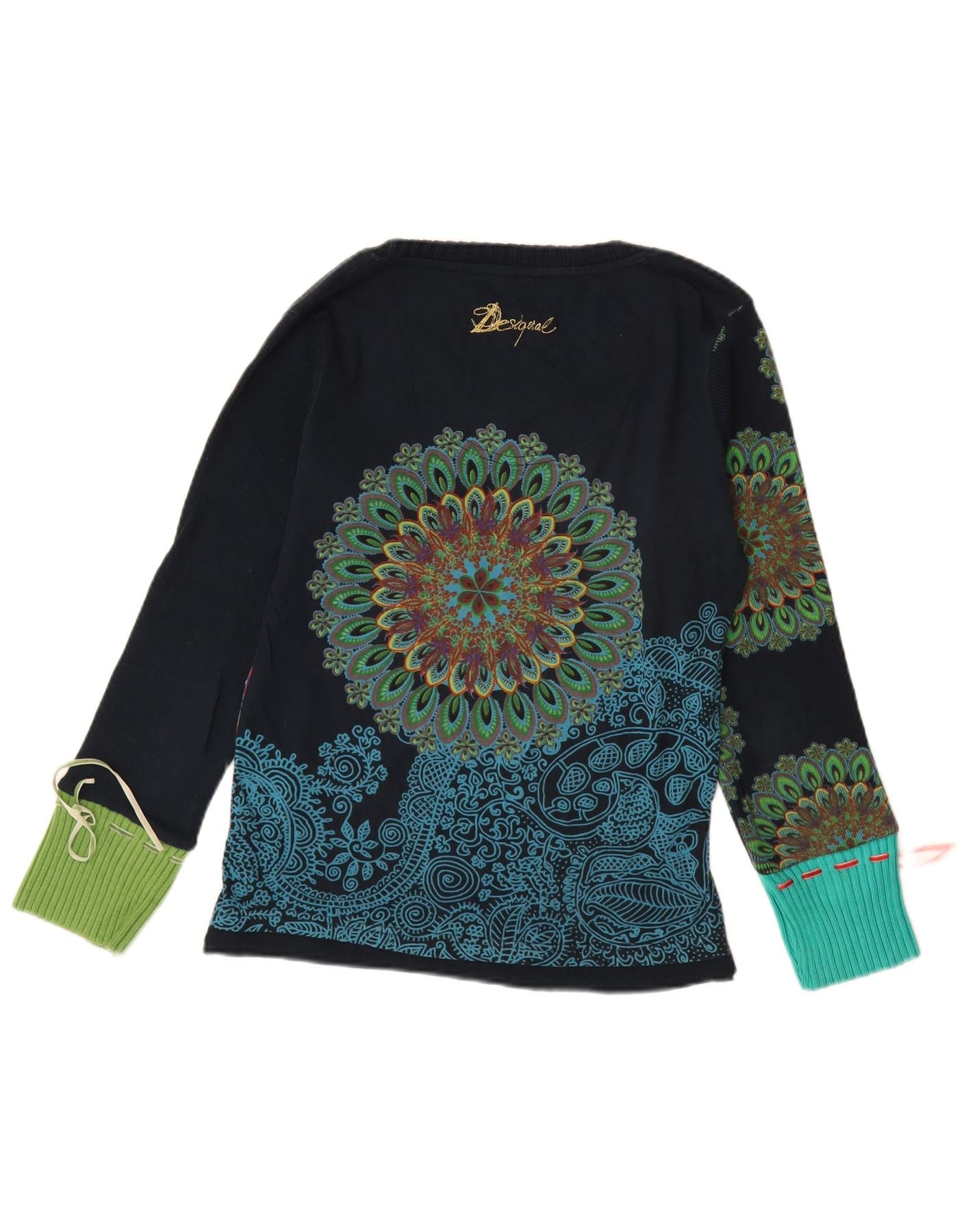 DESIGUAL Womens Graphic Top Long Sleeve UK 12 Medium Navy Blue Paisley