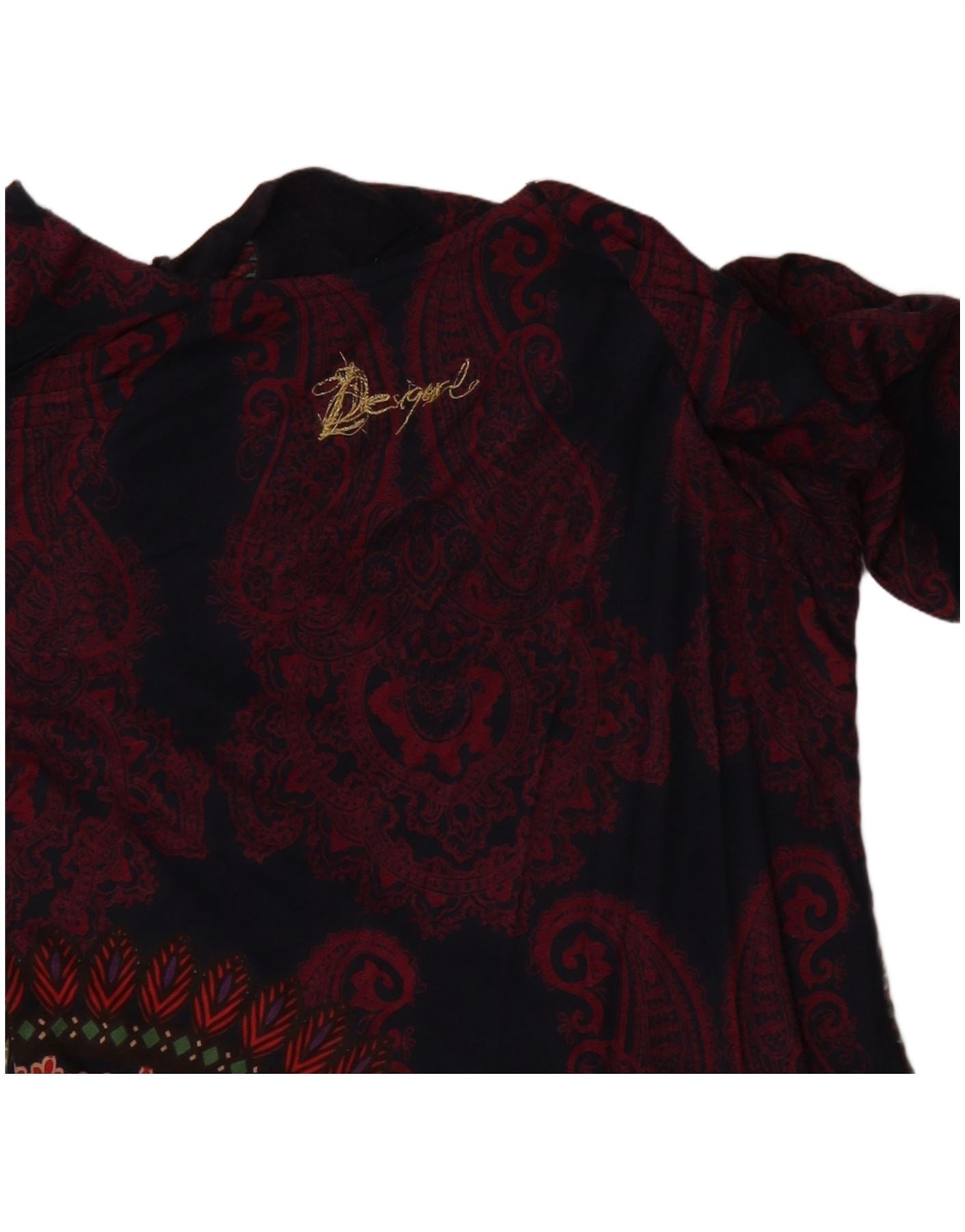DESIGUAL Top gráfico feminino manga comprida Reino Unido 12 médio azul marinho Paisley