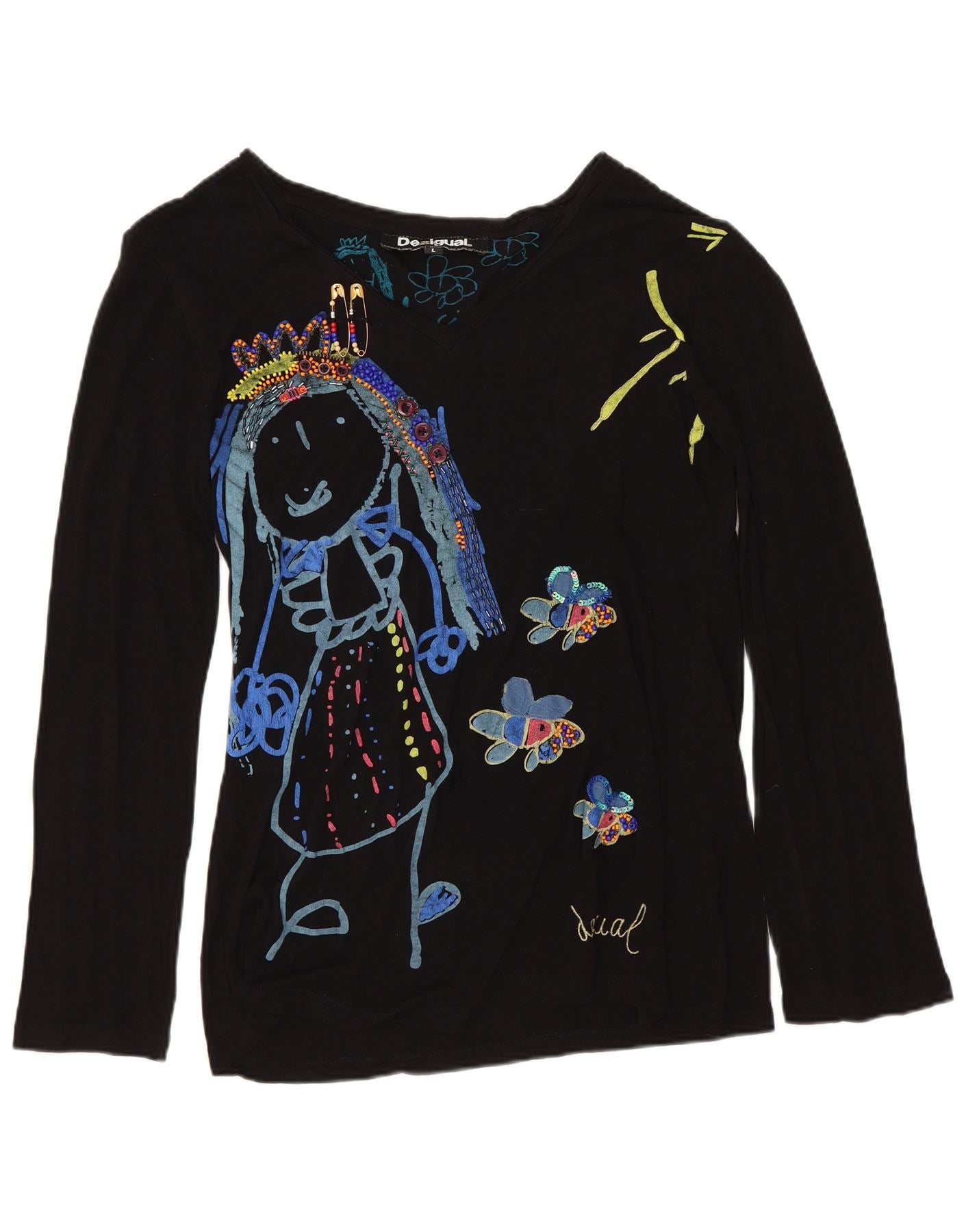 DESIGUAL Womens Graphic Top Long Sleeve UK 16 Large Black