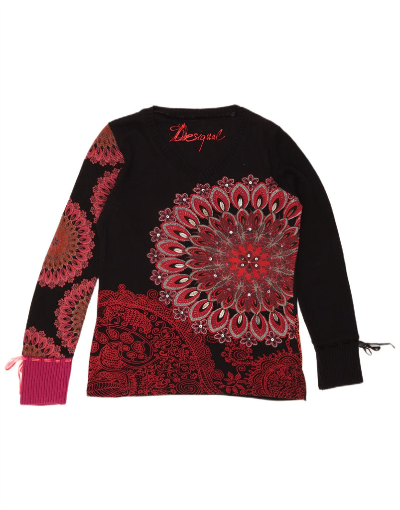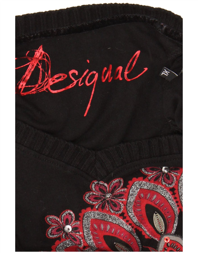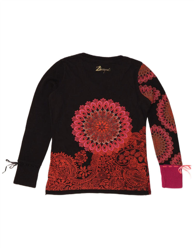 DESIGUAL Womens Graphic Top Long Sleeve UK 18 XL Black Paisley Cotton