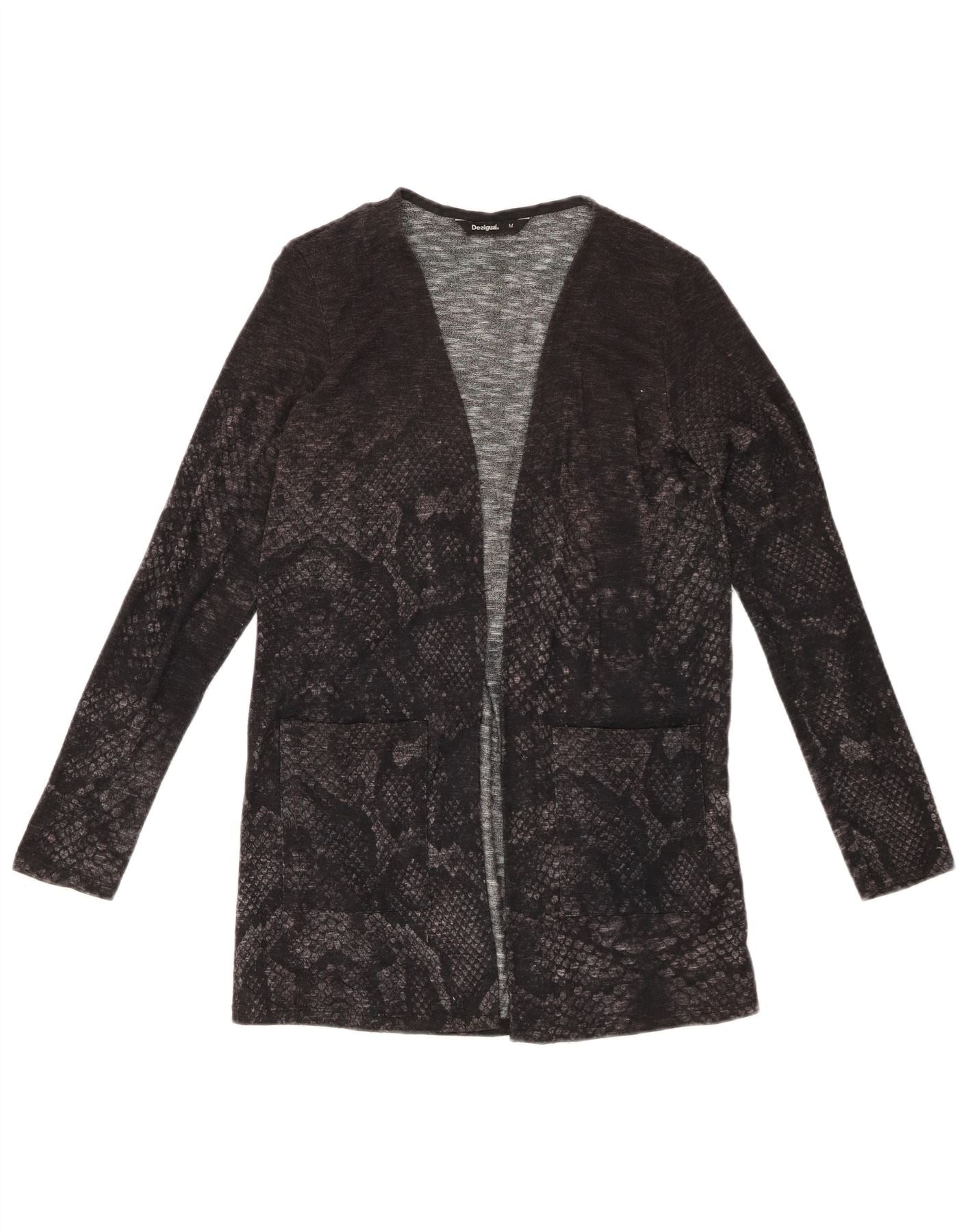 DESIGUAL suéter cardigã feminino aberto Reino Unido 12 cinza médio estampa animal