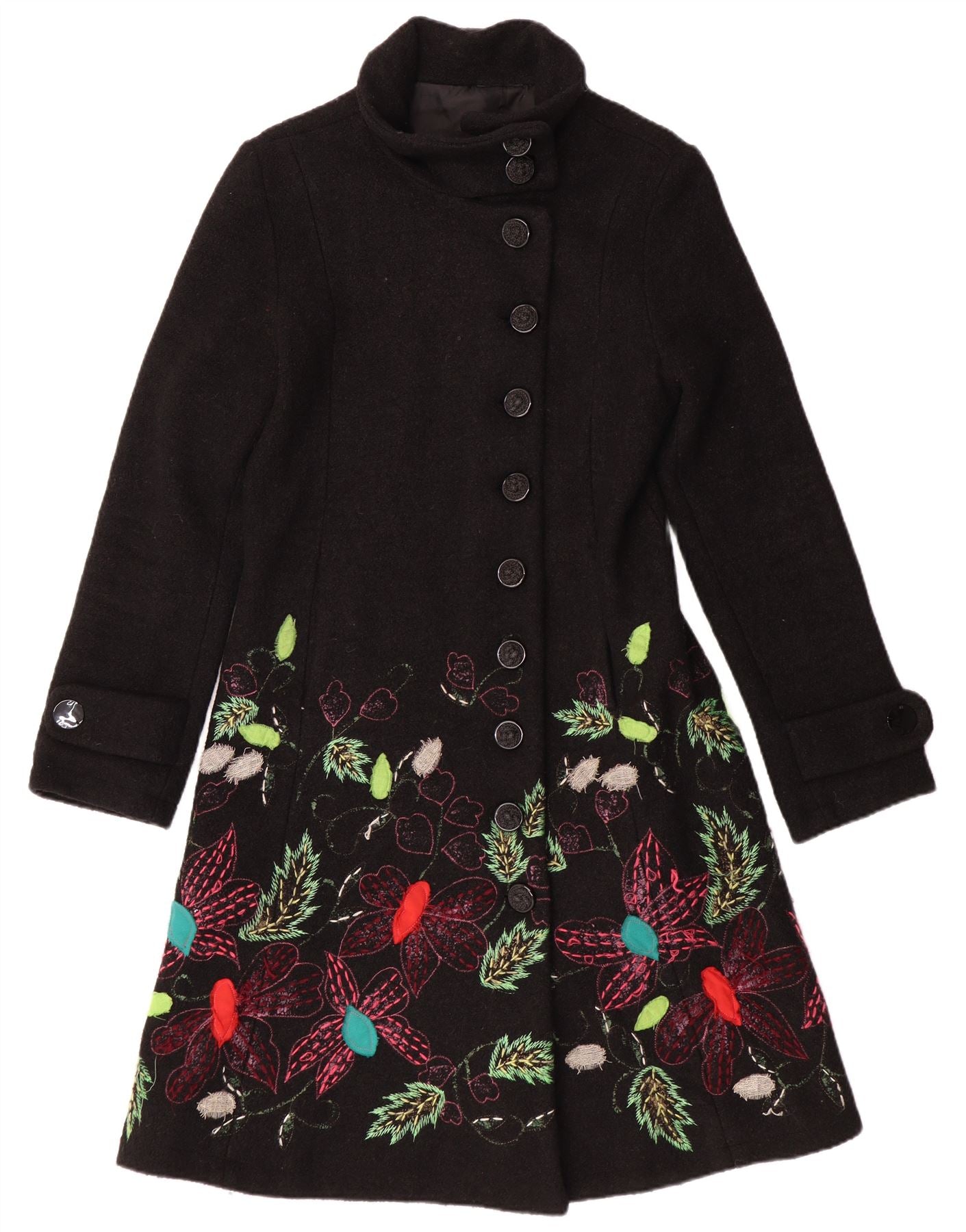 Sobretudo feminino DESIGUAL UK 10 pequeno preto floral viscose boêmio