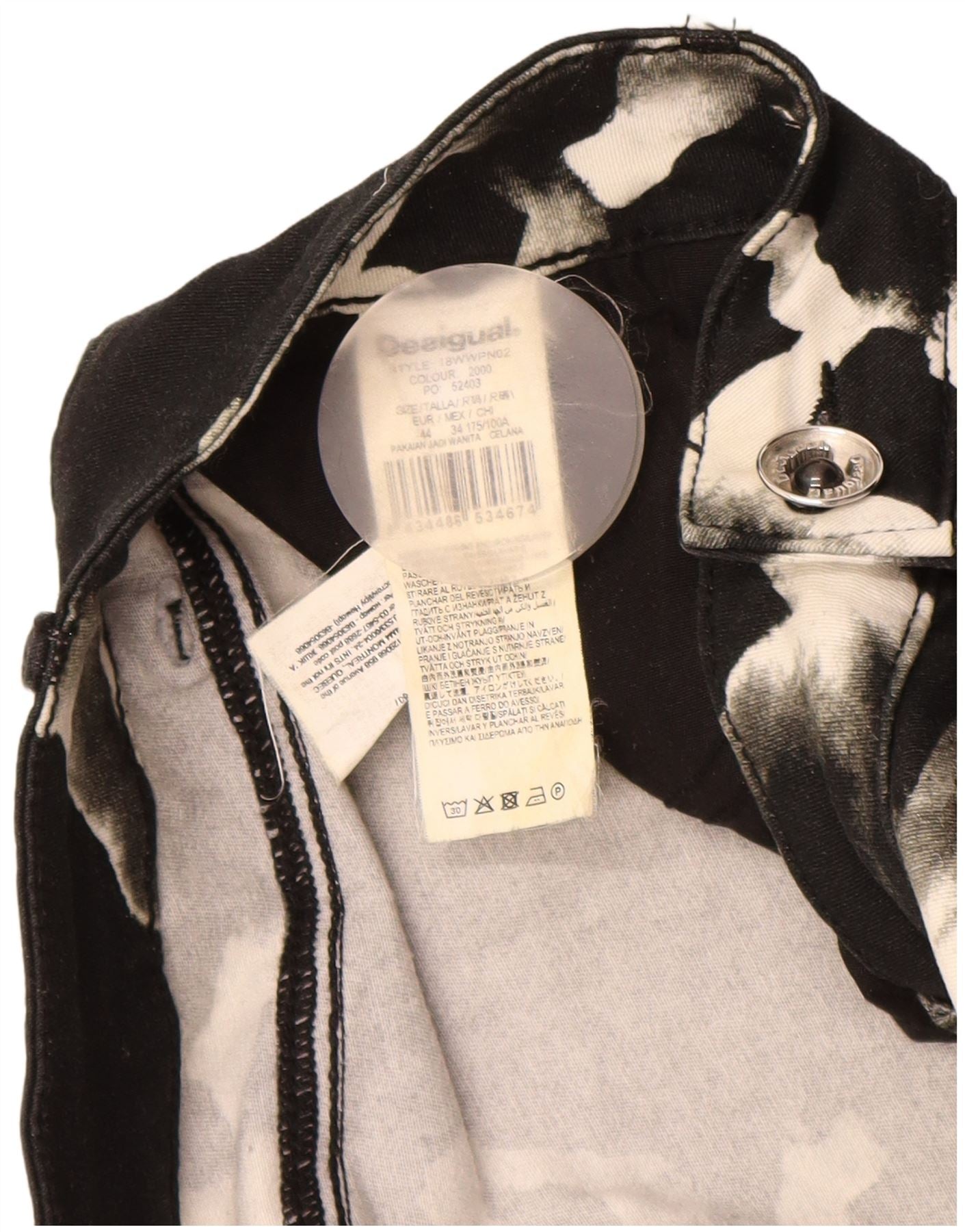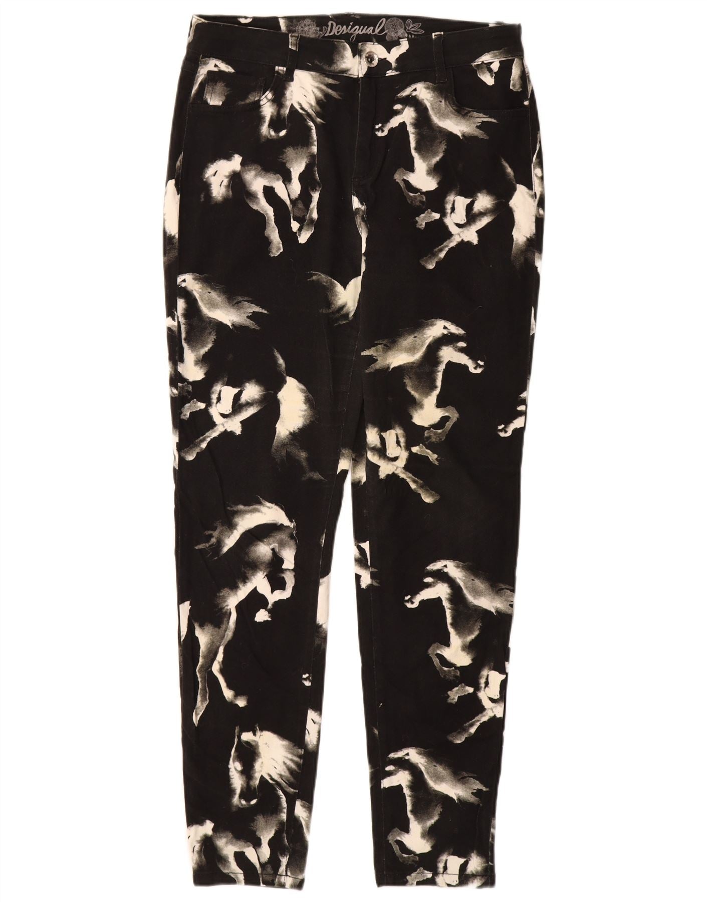 Calça feminina casual skinny DESIGUAL EU 44 XL W34 L31 preta estampa animal
