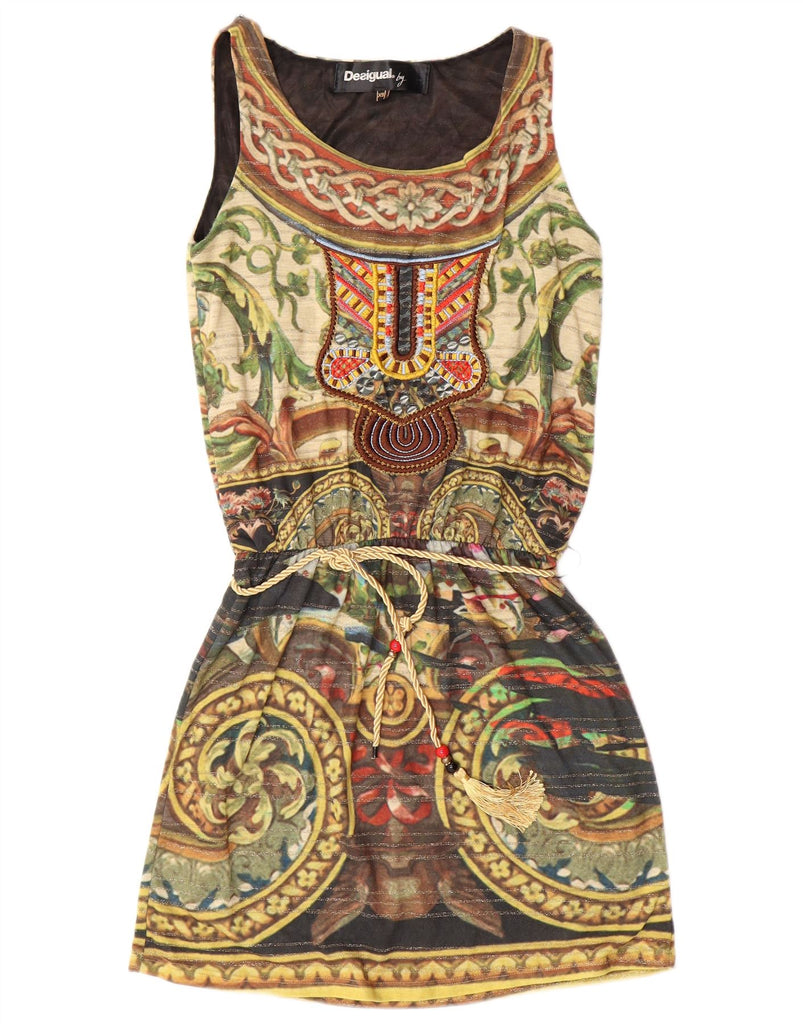 DESIGUAL Womens Sleeveless Sheath Dress UK 6 XS Multicoloured Paisley