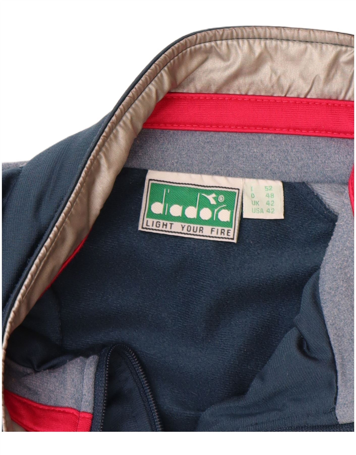 Jaqueta masculina de agasalho DIADORA UK 42 grande bloco colorido azul marinho