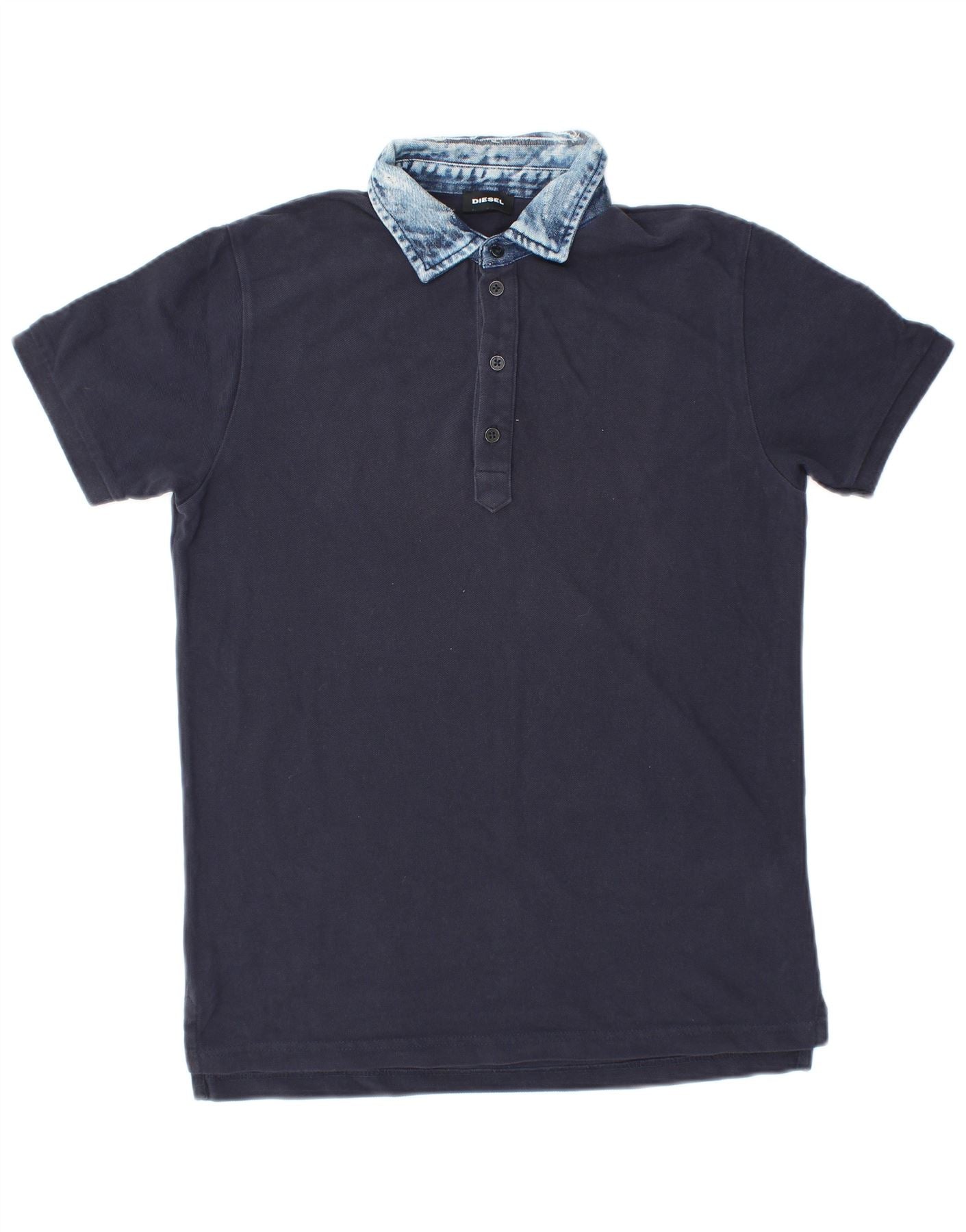 Camisa polo masculina DIESEL pequena algodão azul marinho