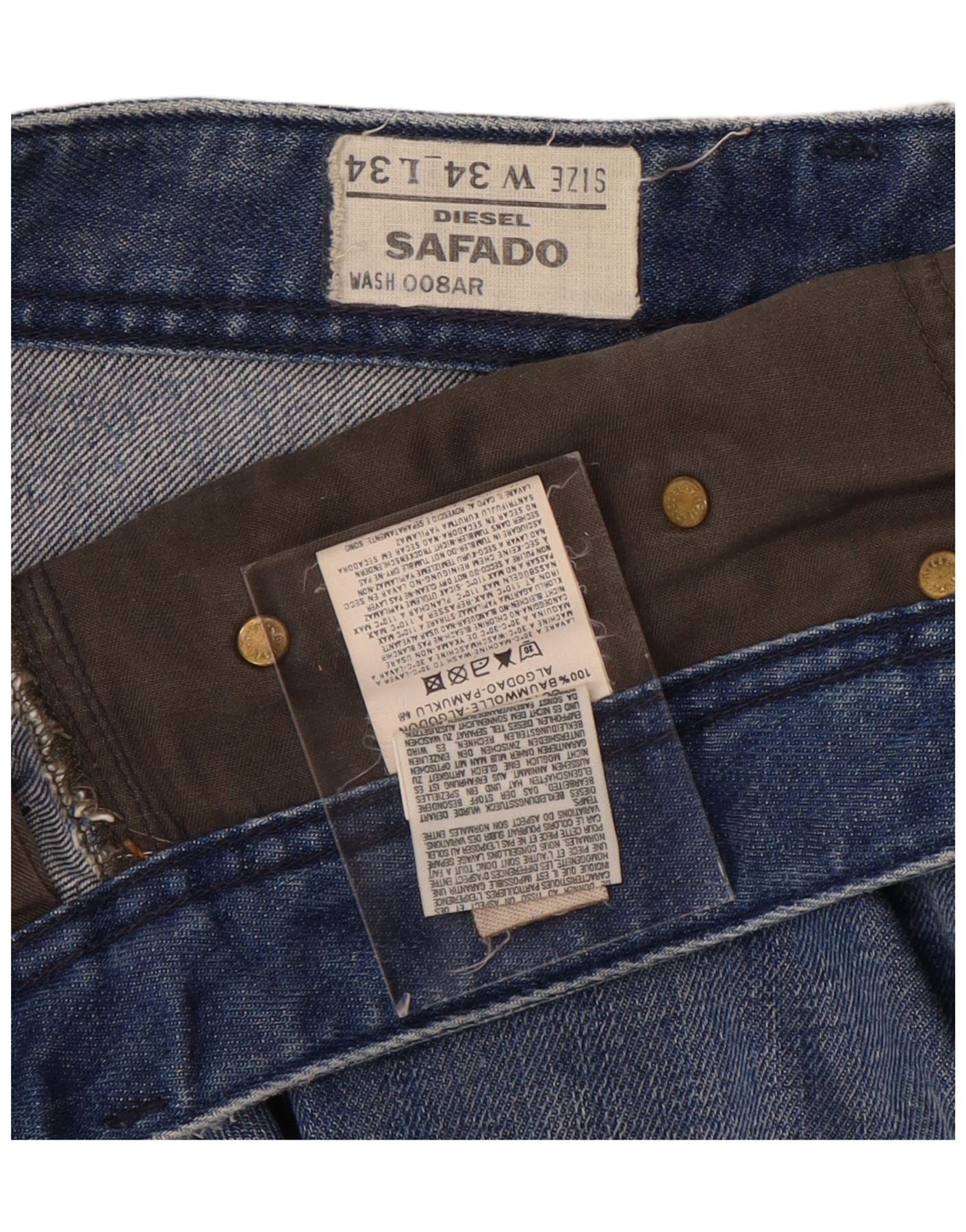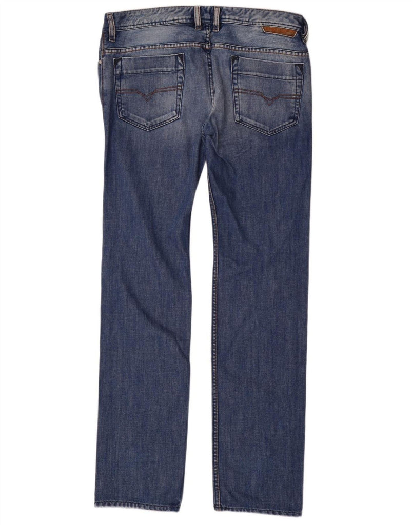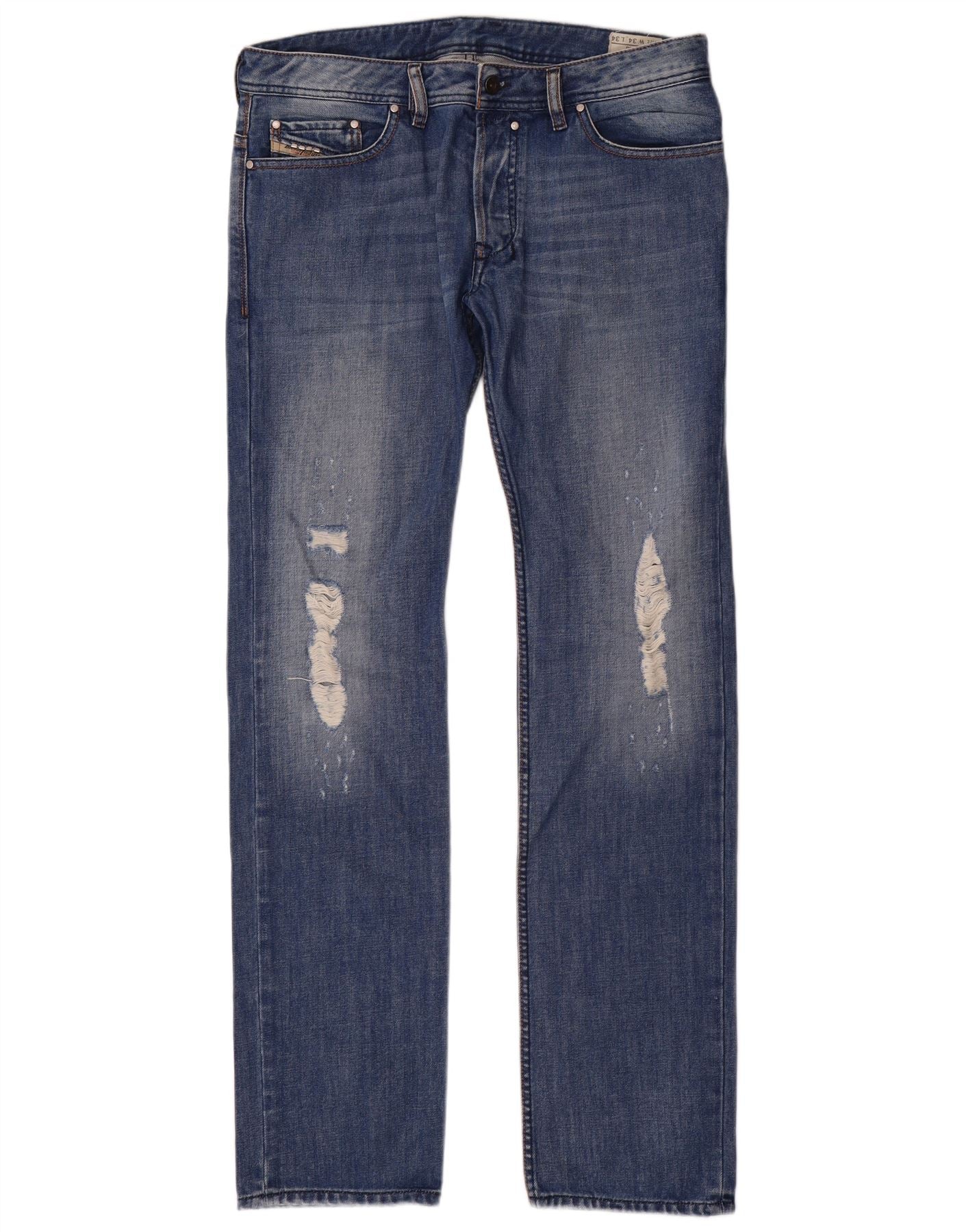 DIESEL Masculino Safado Distressed Straight Jeans W34 L34 Azul Algodão