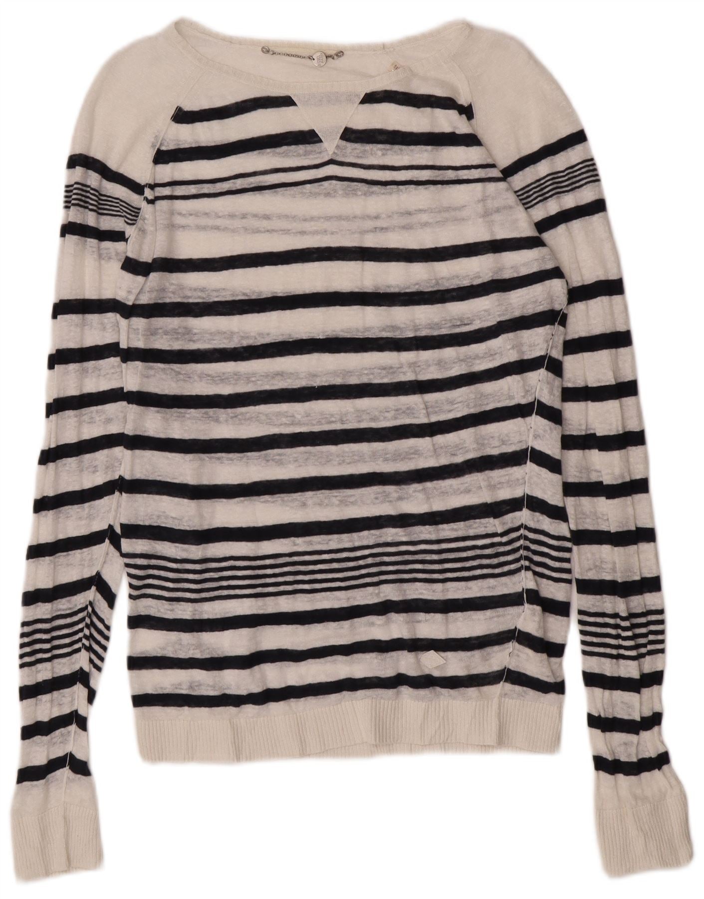 Suéter feminino Diesel com gola canoa e listrado branco médio UK 14