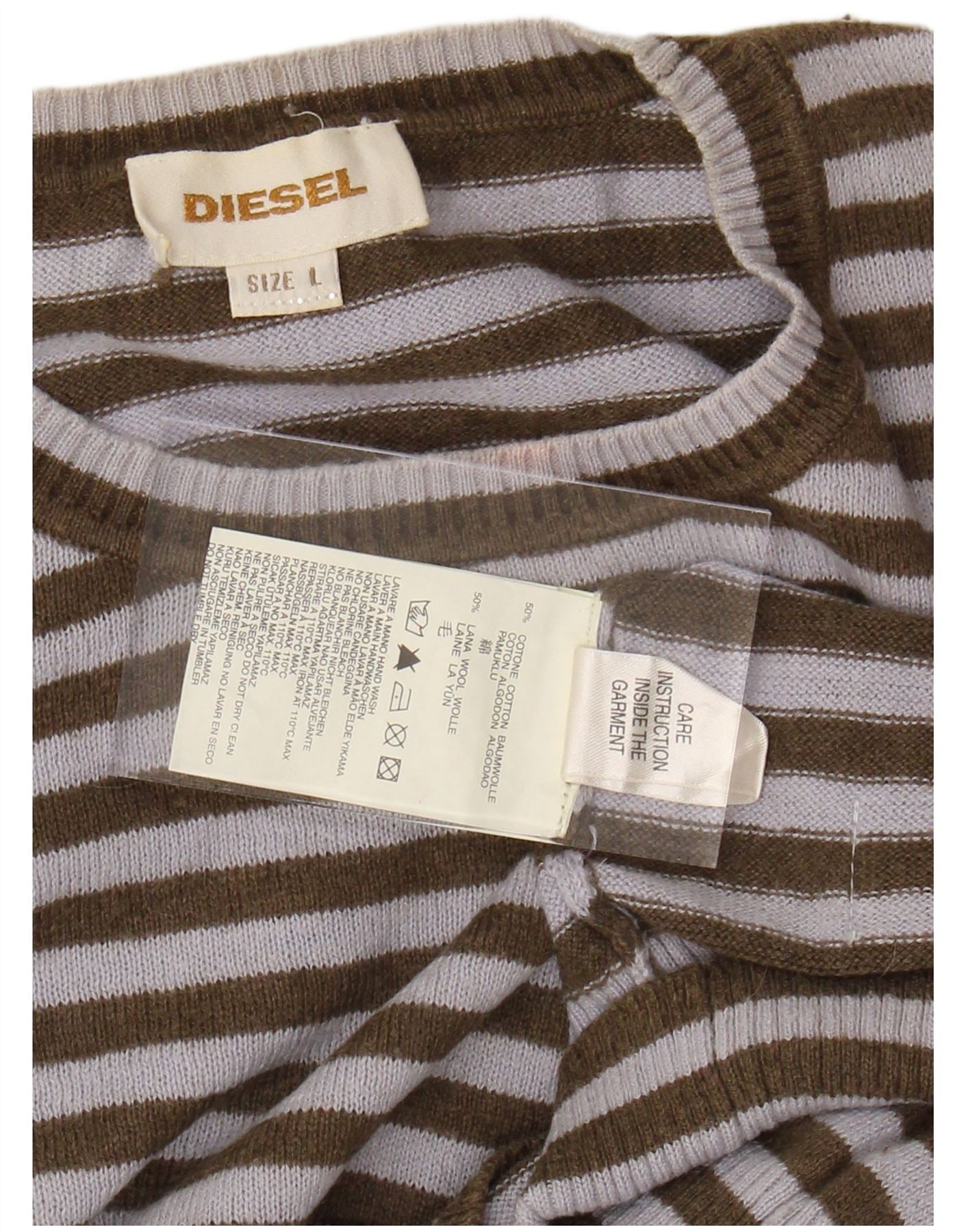 Home > mulheres > Roupas Depop > DIESEL Suéter feminino com gola redonda, Reino Unido 16, grande, listrado cáqui, algodão