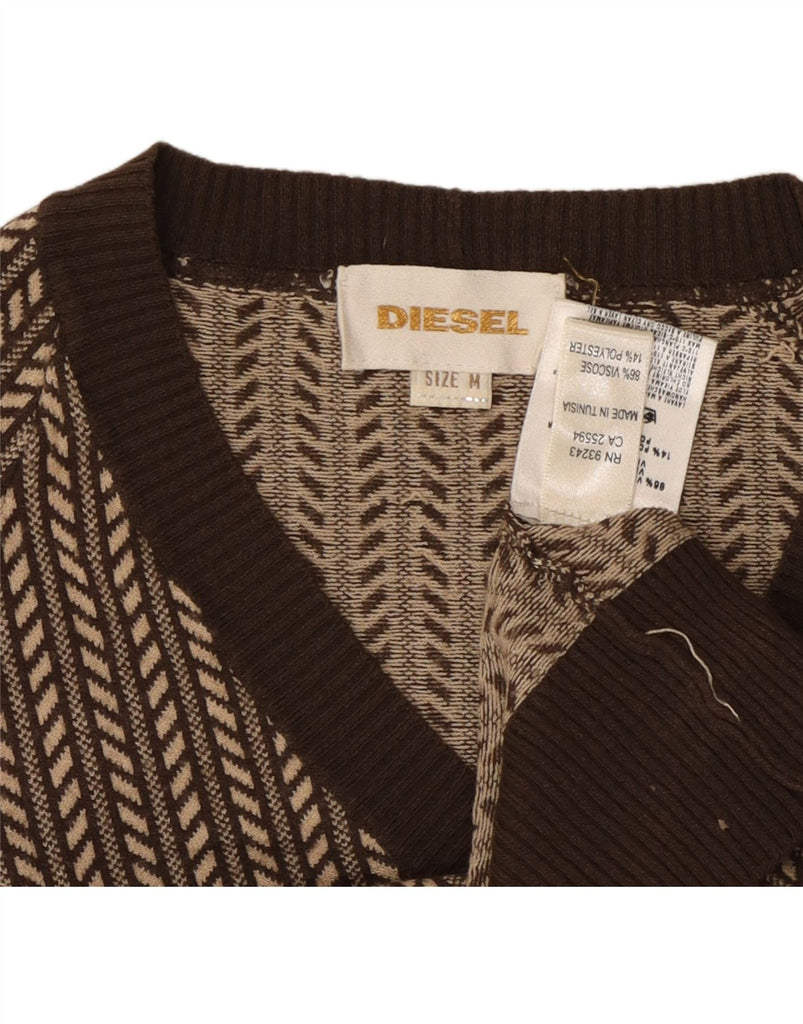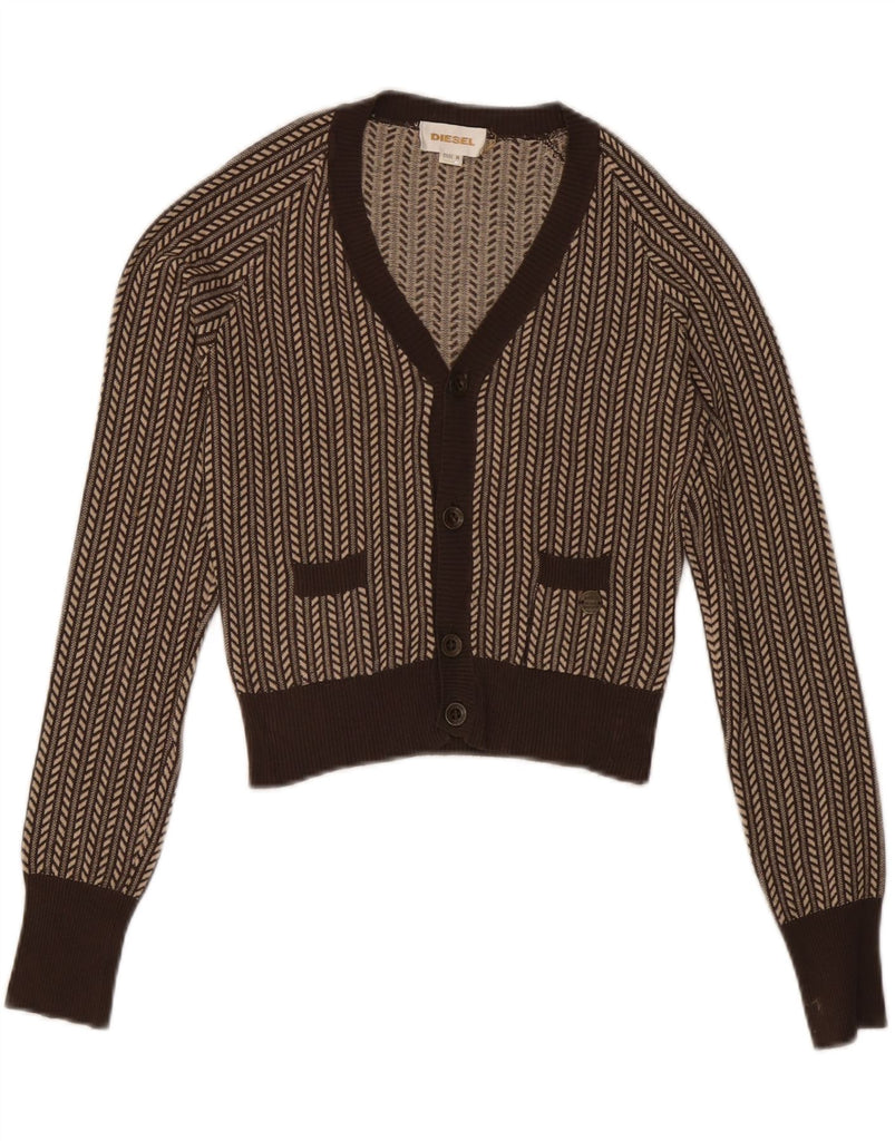 Suéter cardigã feminino DIESEL Reino Unido 12 viscose listrada marrom médio