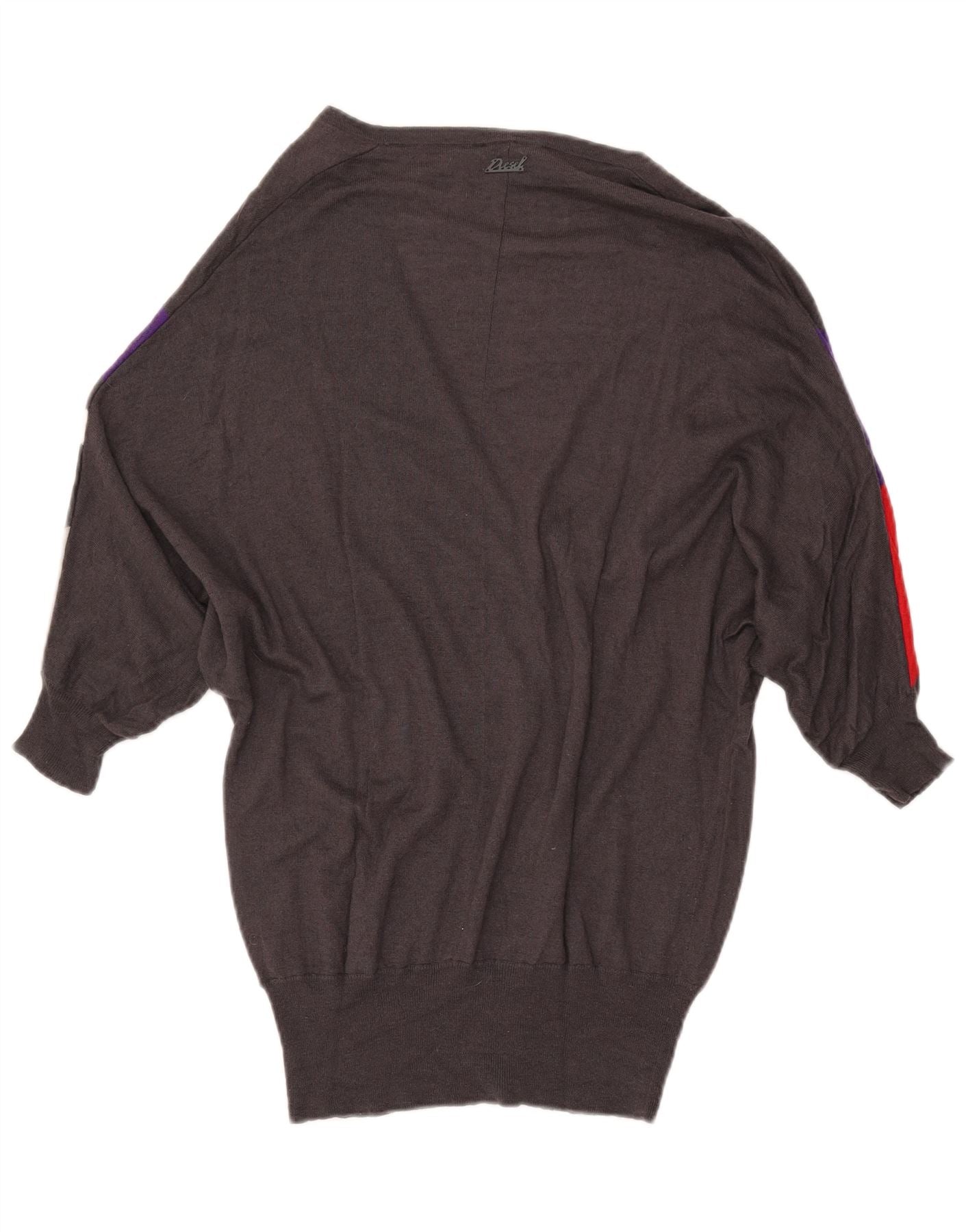 Suéter cardigã feminino DIESEL Longline UK 10 pequeno bloco cinza colorido