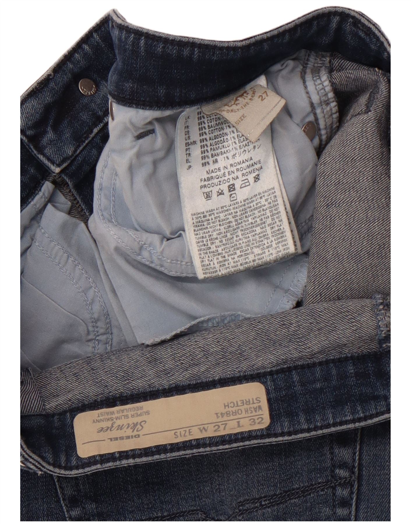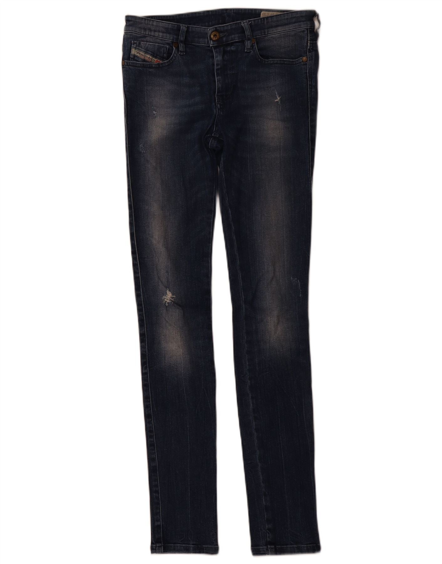 DIESEL Calça jeans feminina super slim skinzee desgastada W27 L32 azul