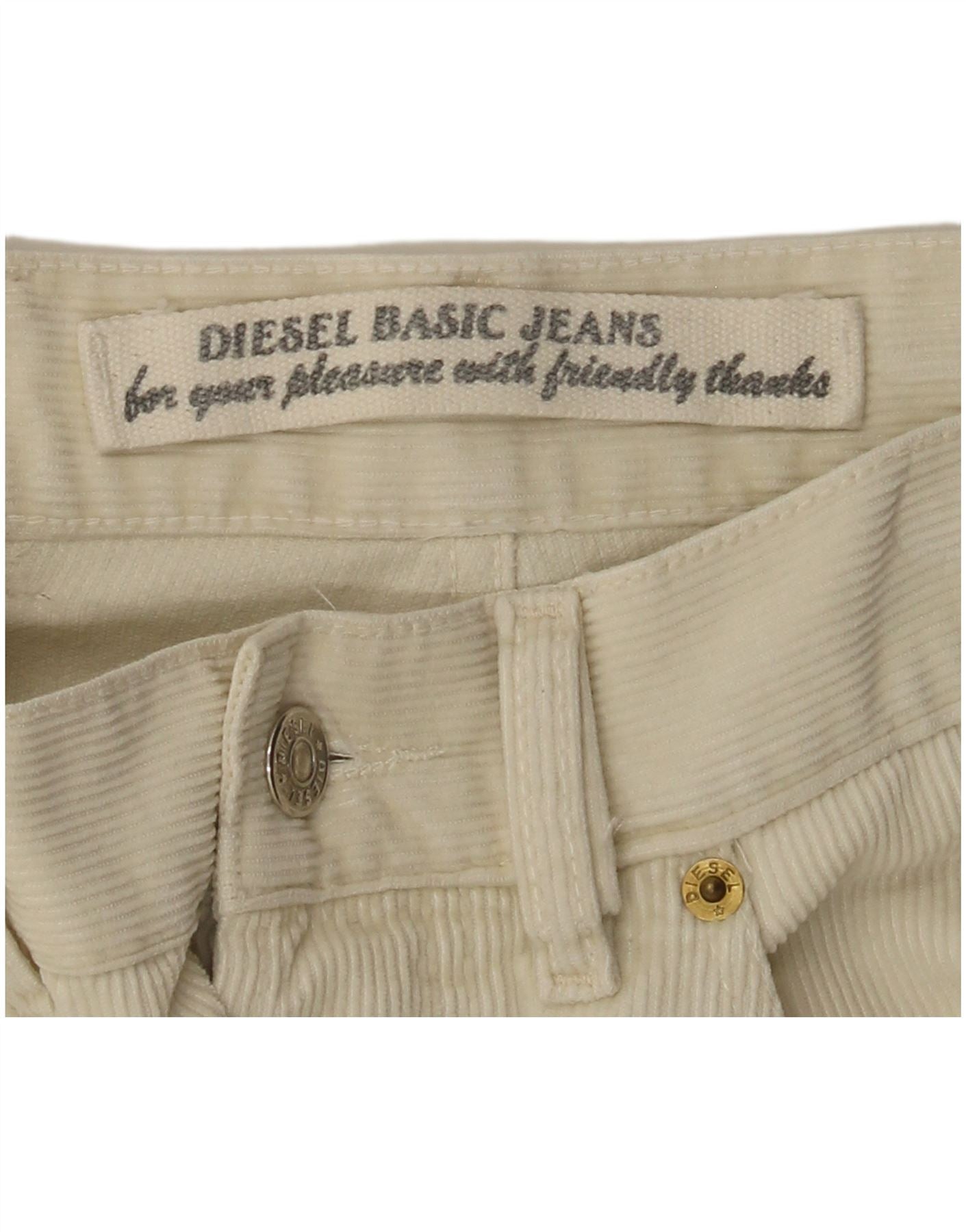 Calça feminina reta de veludo DIESEL W32 L30 branco