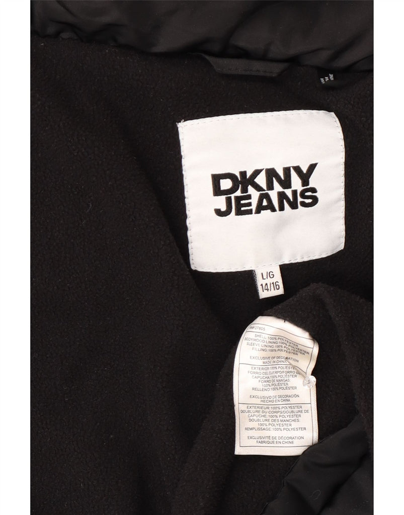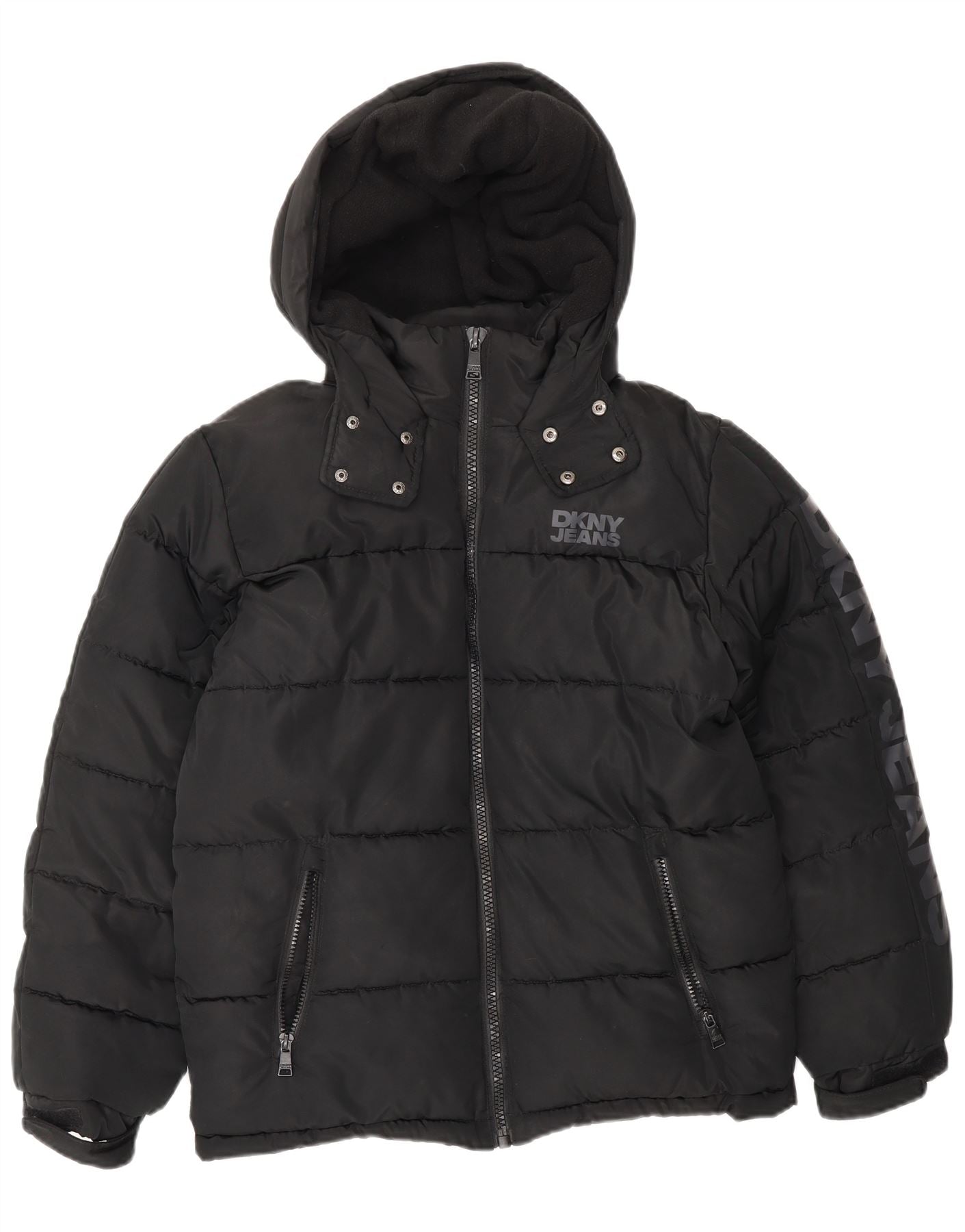 DKNY Boys Graphic Hooded Padded Jacket 14-15 Years Large Black Polyester