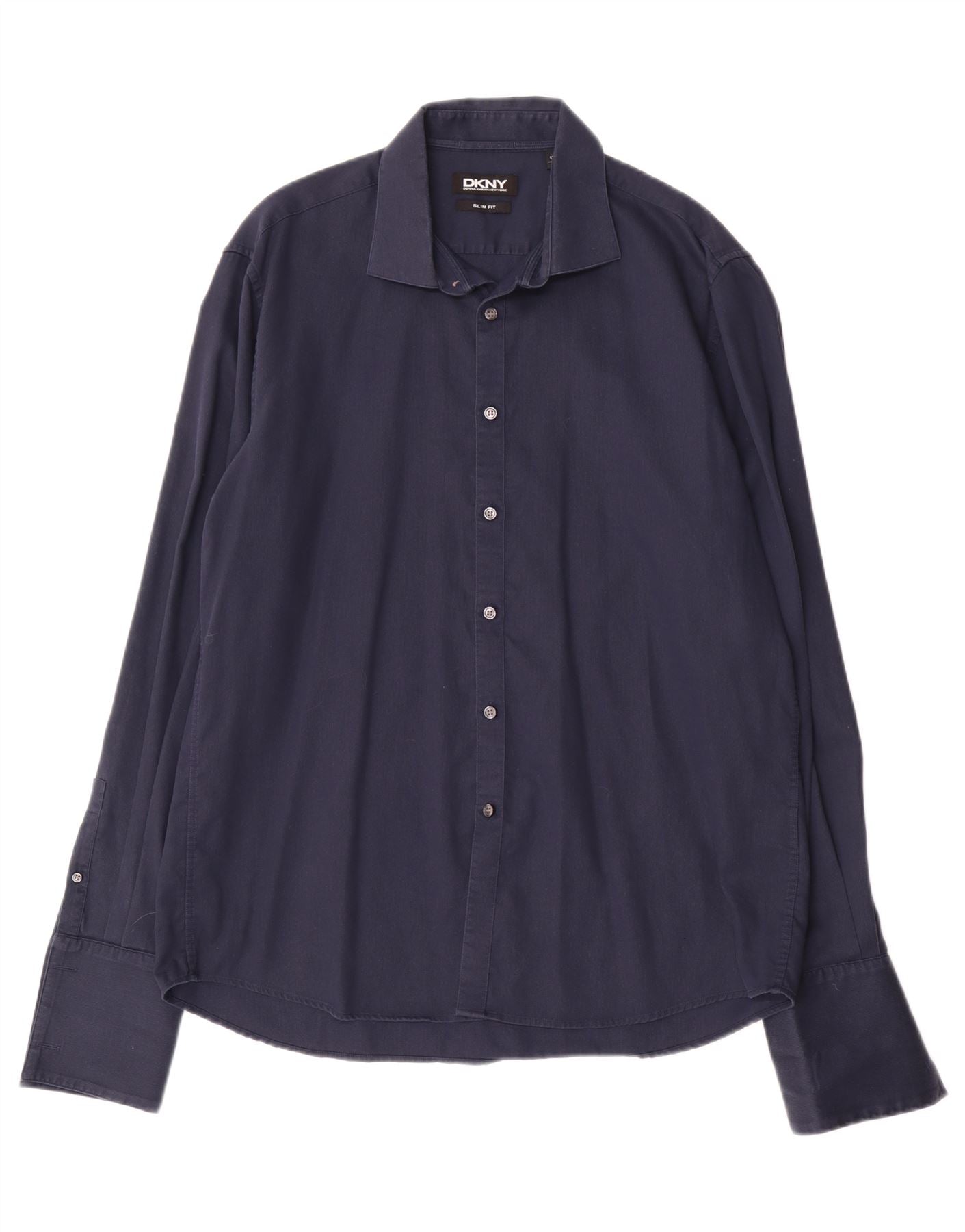 Camisa masculina DKNY Slim Fit tamanho 17 1/2 44 XL azul marinho algodão
