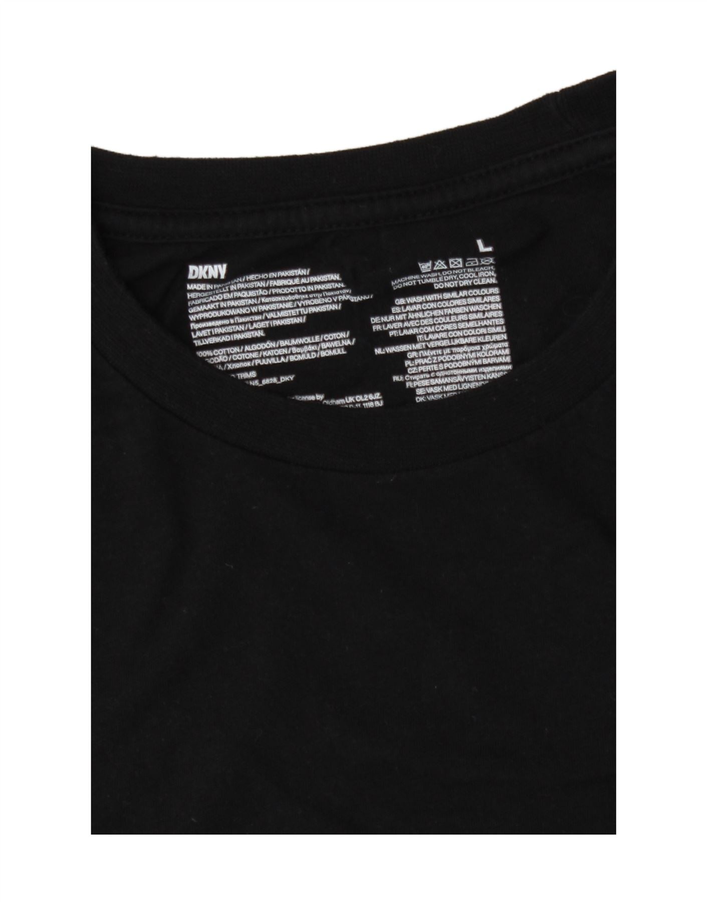 - Descrição da IA: Esta camiseta gráfica masculina Dkny é confeccionada em jersey preto macio 100% algodão. Oferece uma textura suave e conforto respirável. O clássico decote redondo e as mangas curtas proporcionam uma silhueta atemporal. Um sutil logotipo DKNY branco é impresso no peito, adicionando um detalhe exclusivo. Seu ajuste regular garante facilidade de movimento e estilo versátil.