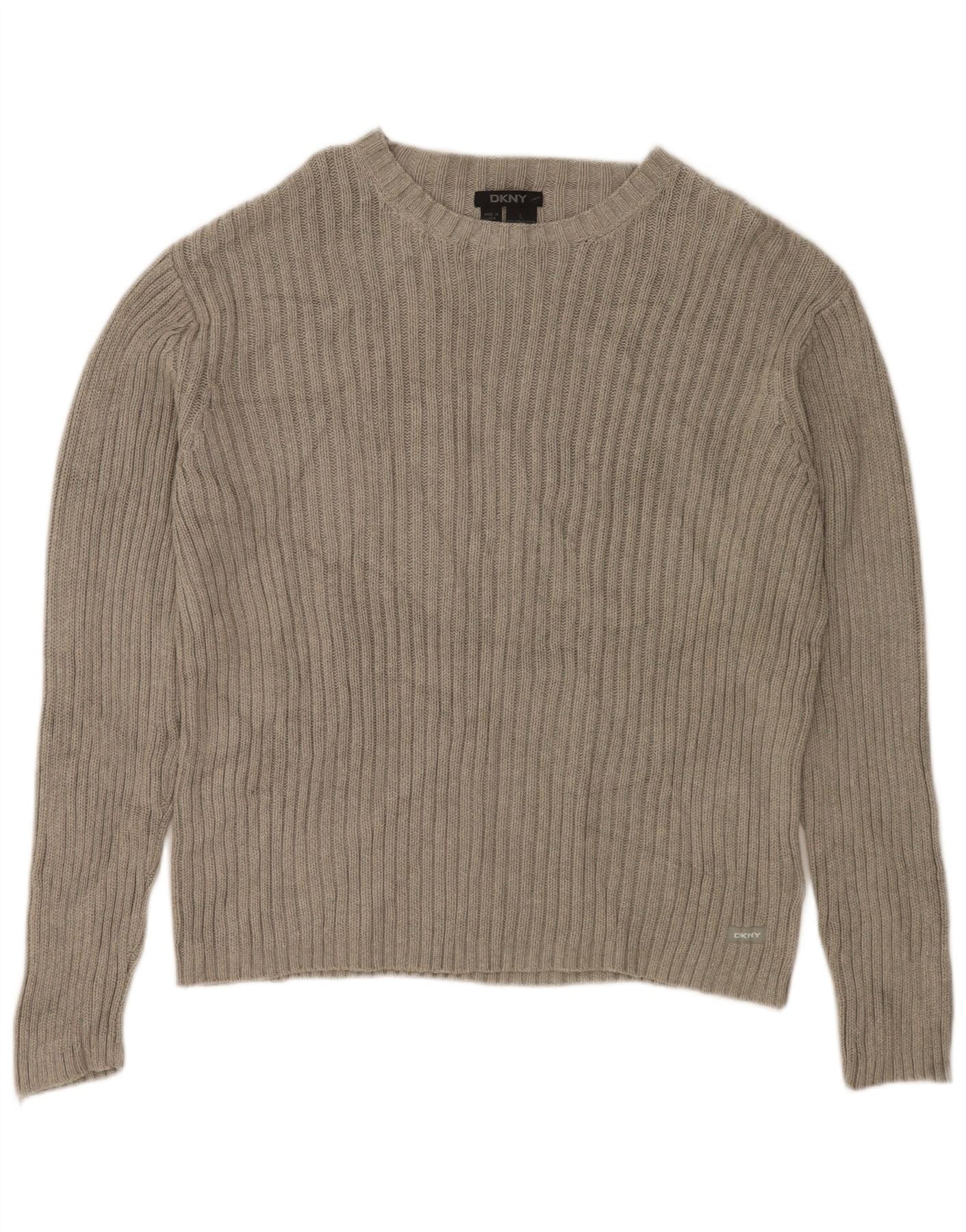 Suéter feminino DKNY com gola canoa Reino Unido 16 grande algodão cinza