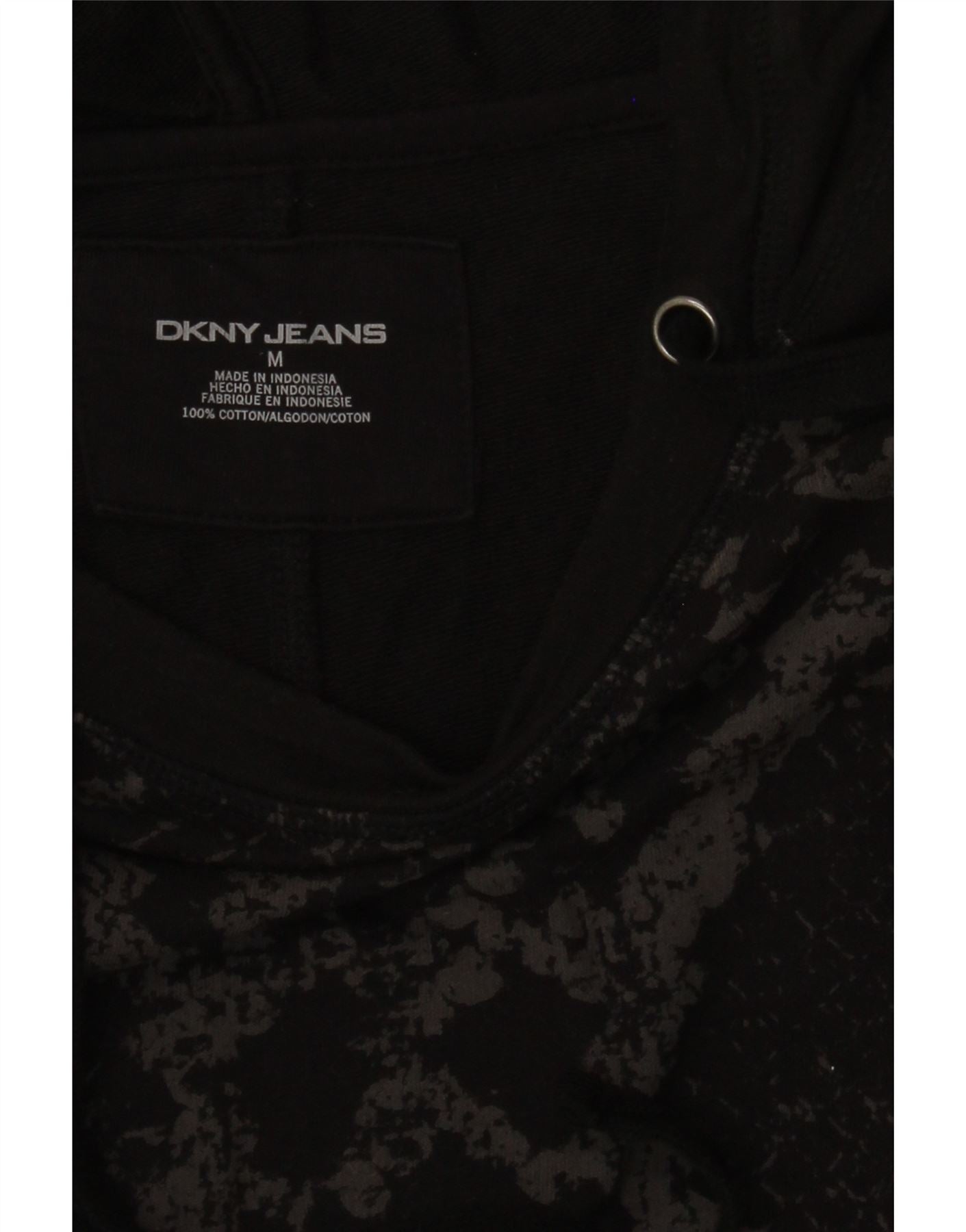 Suéter com capuz feminino Dkny UK 14 algodão geométrico preto médio