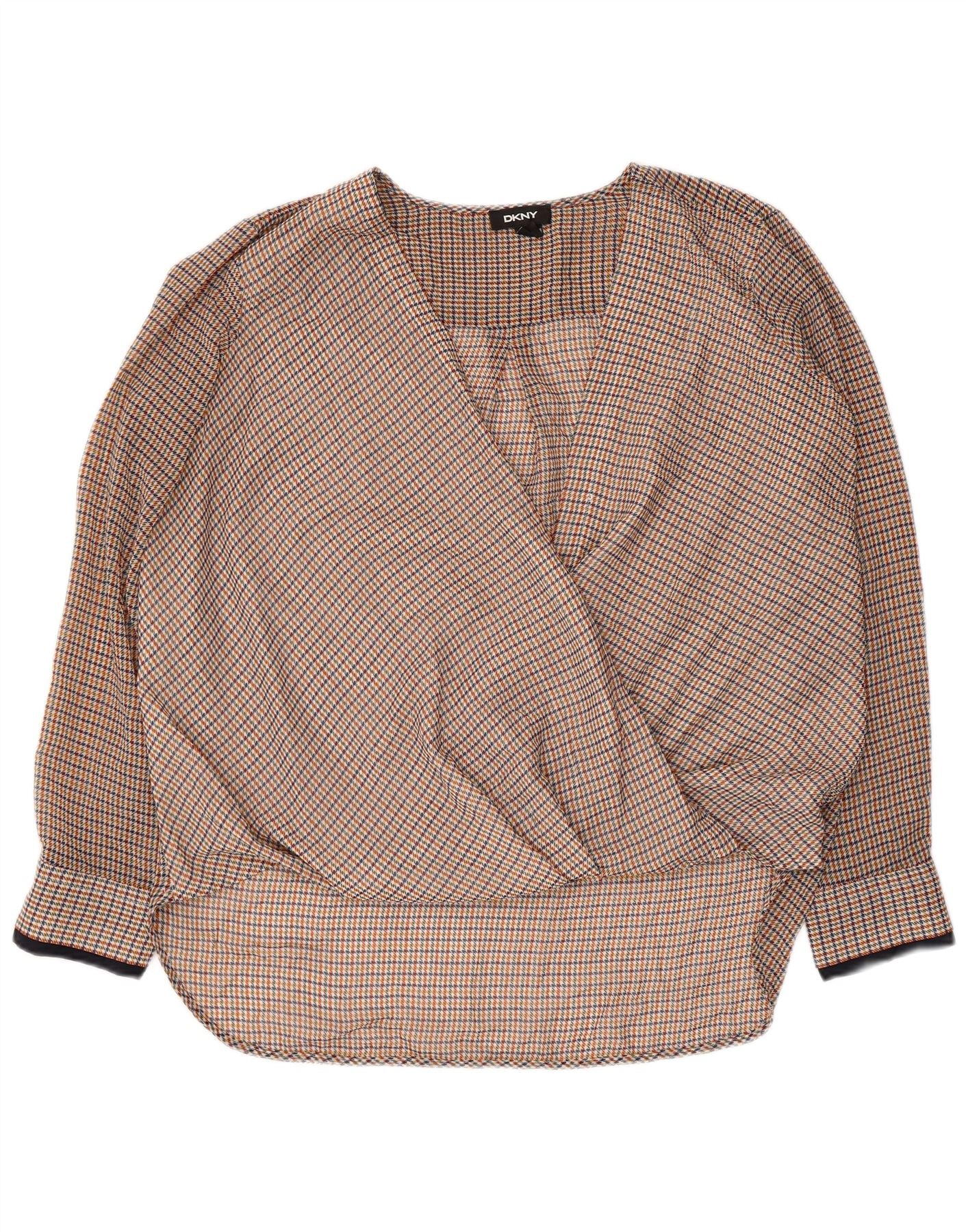 Blusa feminina de manga comprida DKNY Reino Unido 16 grande houndstooth multicolorido