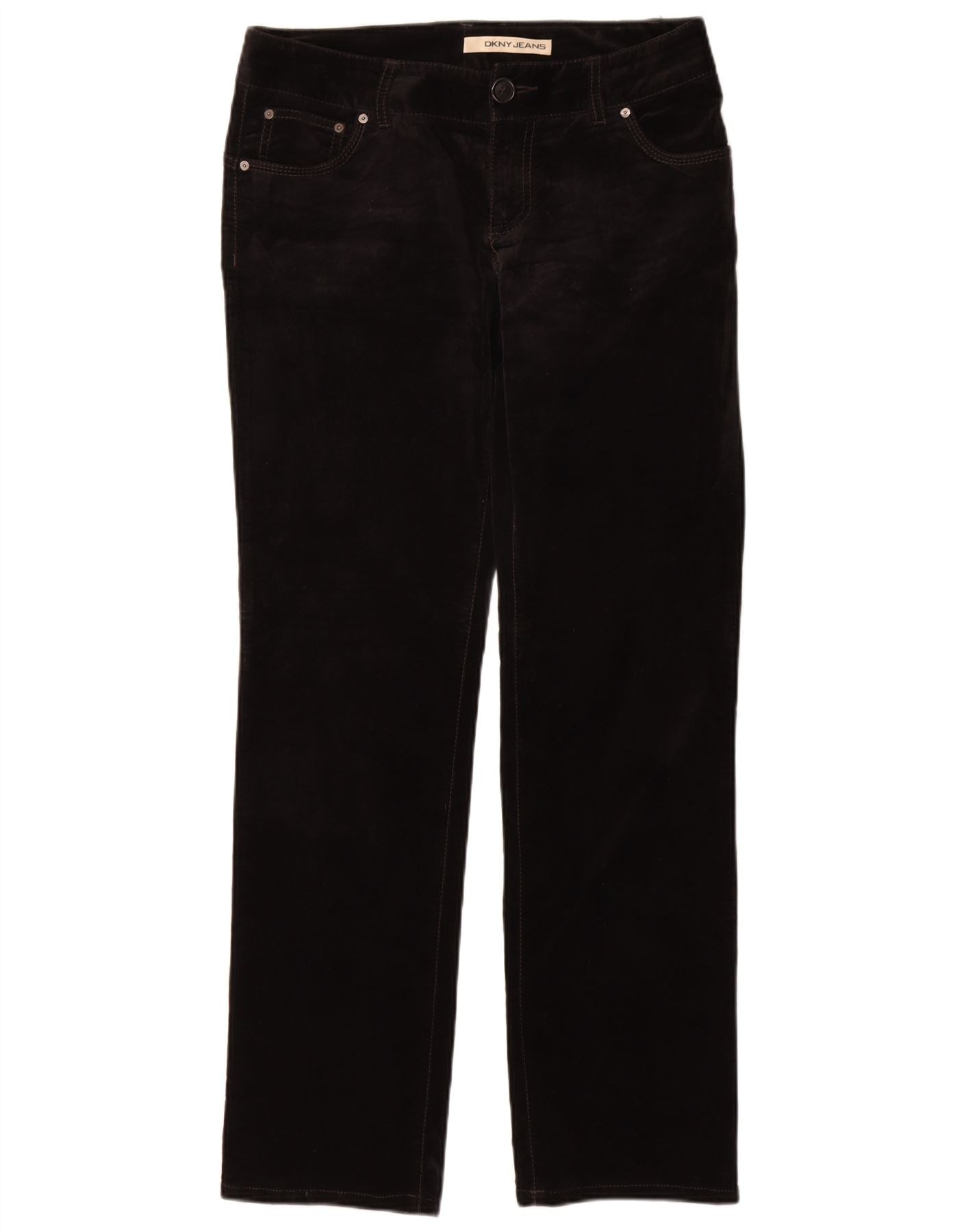 Calça feminina casual de veludo reto DKNY EUA 8 médio W30 L33 preta