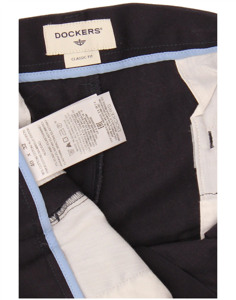 DOCKERS Mens Classic Fit Pegged Chino Trousers W40 L32 Navy Blue Cotton