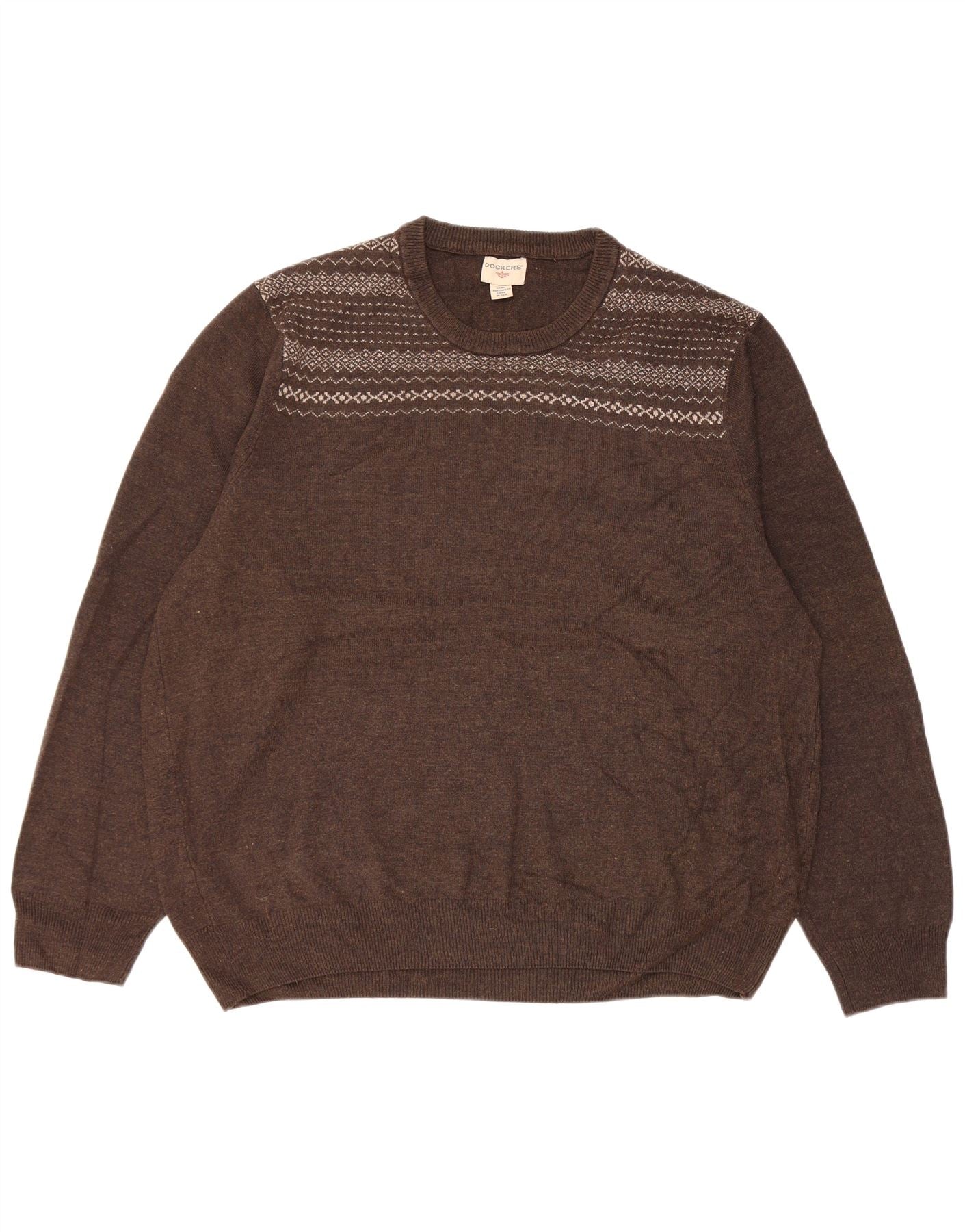 Suéter masculino Dockers com gola redonda XL marrom Fair Isle acrílico