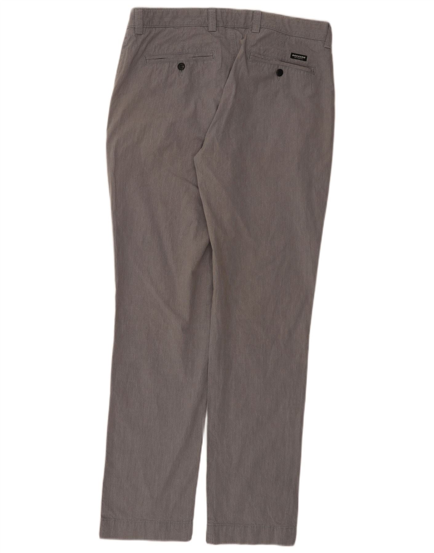 - Descrição da IA: Esta calça Chino masculina Dockers é confeccionada em tecido de mistura de algodão cinza com um padrão listrado sutil. O material oferece elasticidade confortável. Eles apresentam um fecho de botão clássico e um ajuste regular. O design de perna reta garante uma silhueta atemporal. Bolsos práticos completam o design.