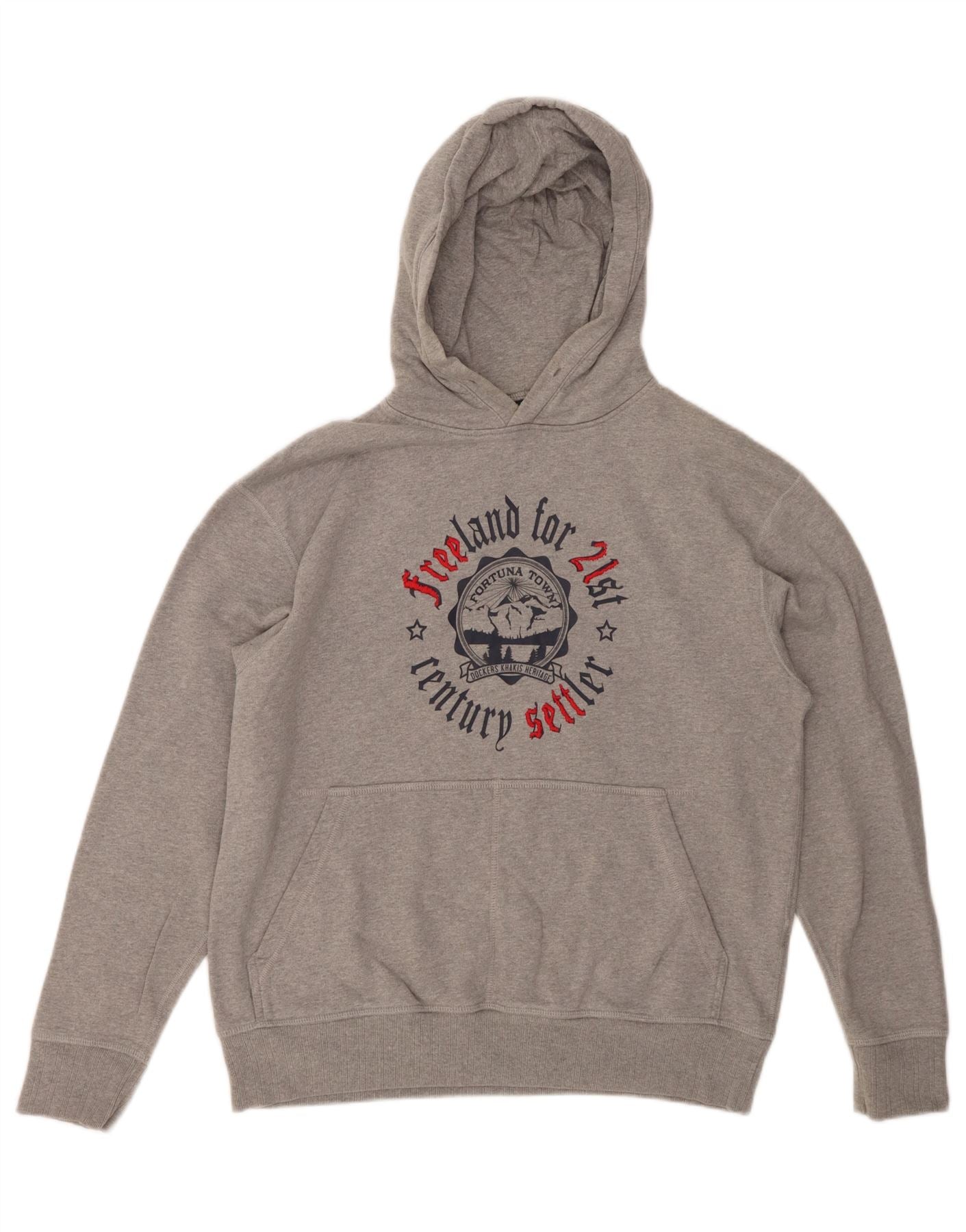 DOCKERS Mens Khakis Graphic Hoodie Jumper UK 38/40 Medium Grey Cotton