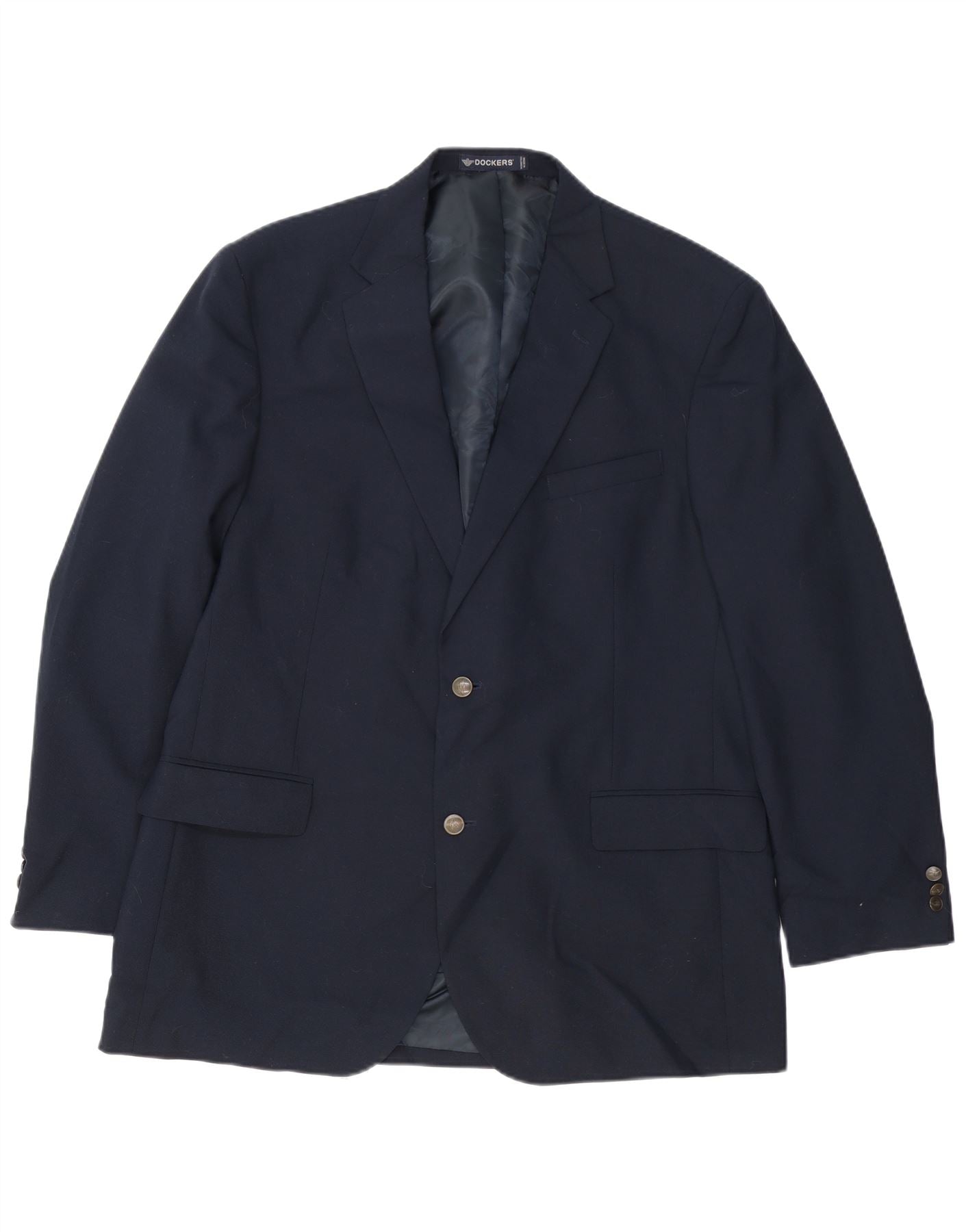 Jaqueta blazer masculina Dockers Longline 2 botões Reino Unido 44 2XL lã azul marinho